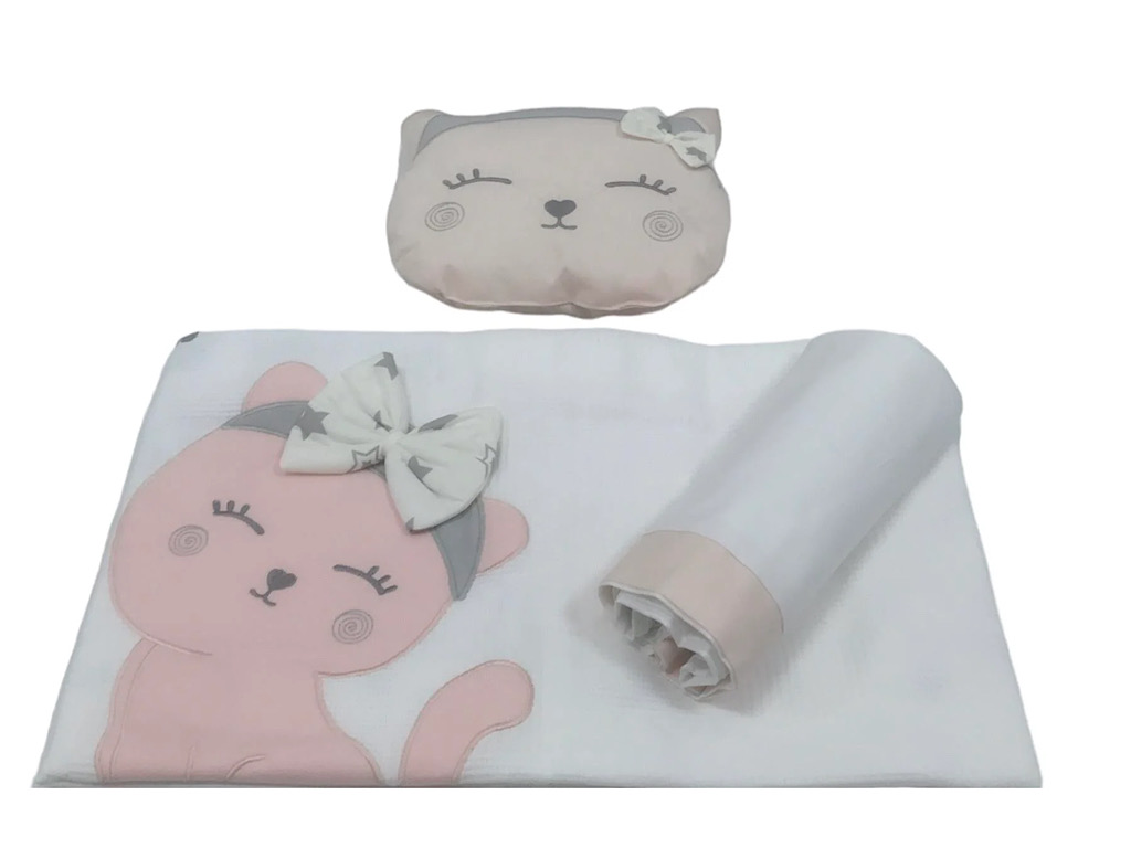 ست 3 تکه روتختی نوزادی به همراه کوسن عروسکی طرح حیوانات bibaby