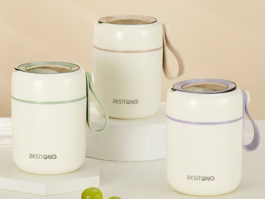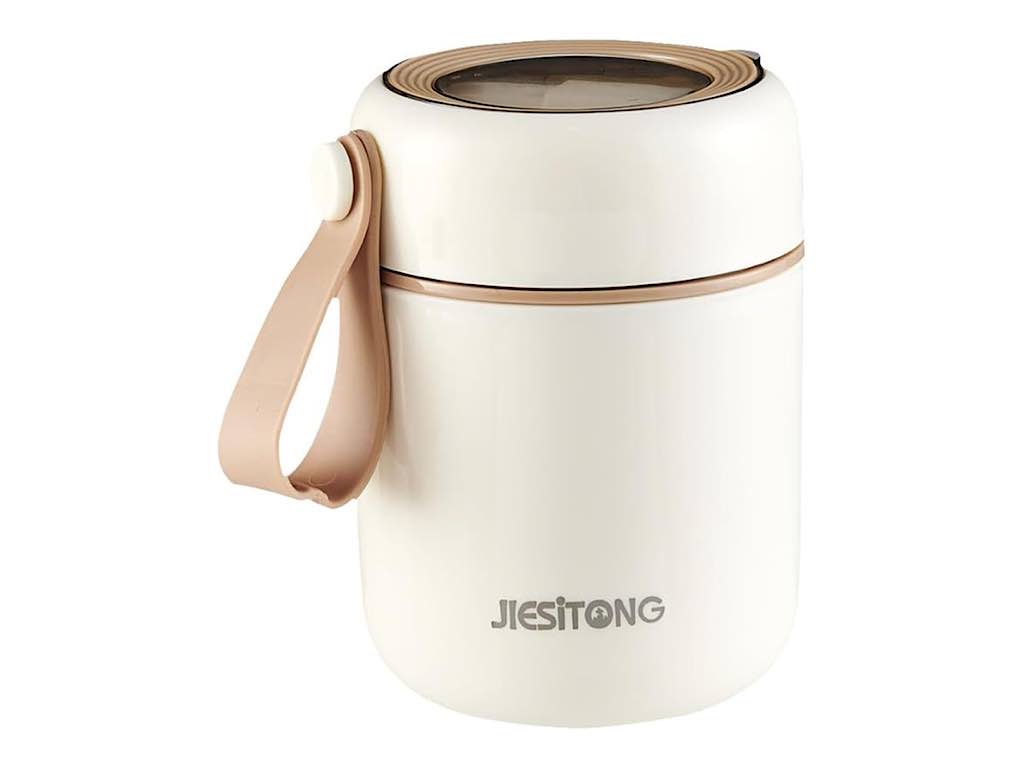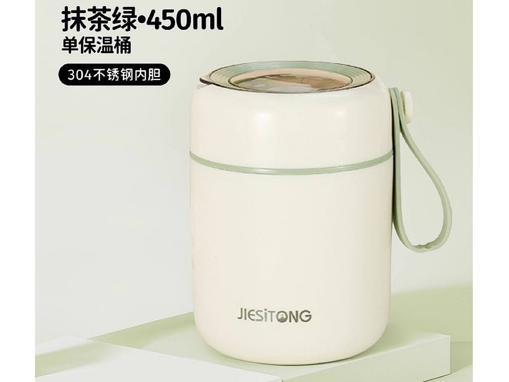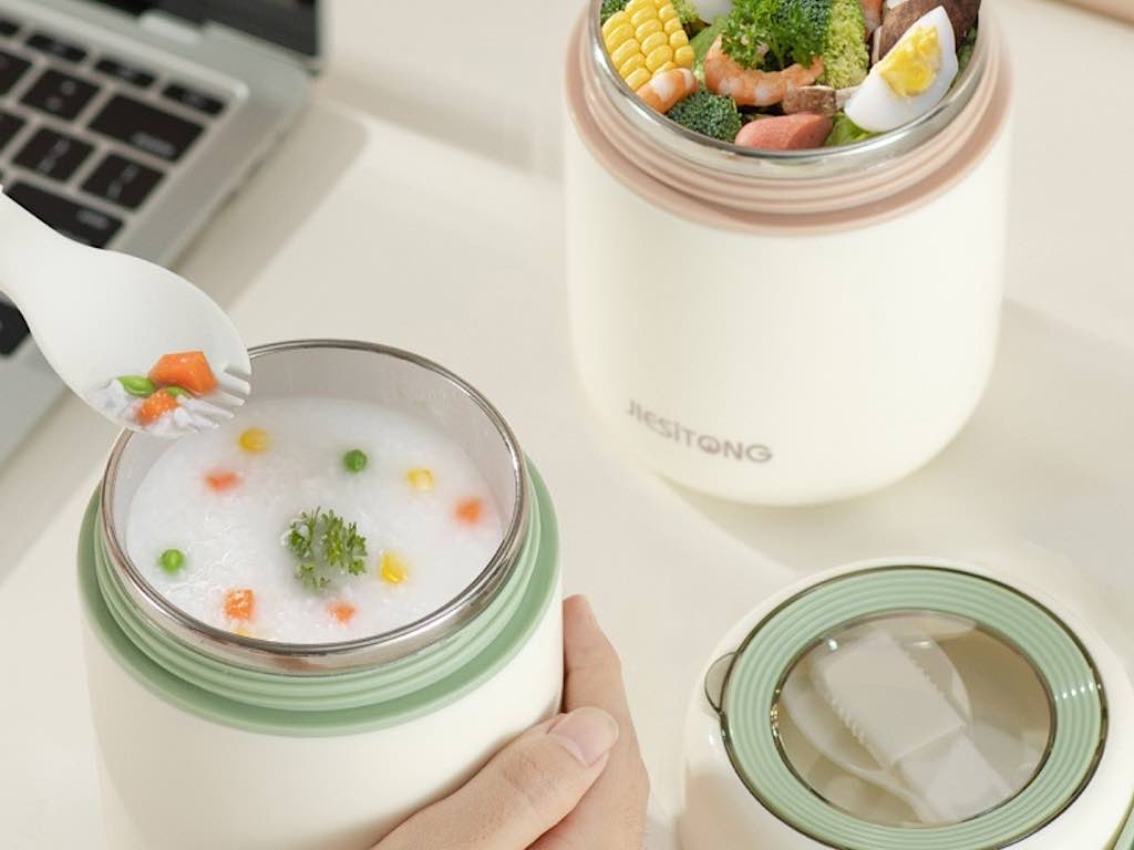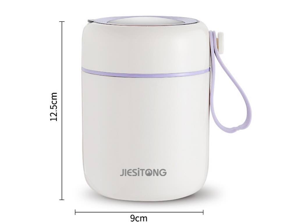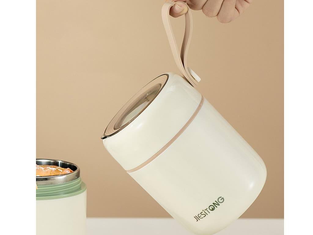 فلاسک و ظرف غذا استیل حجم 450 میلی لیتر با بند سیلیکونی و قاشق چنگالی تاشو