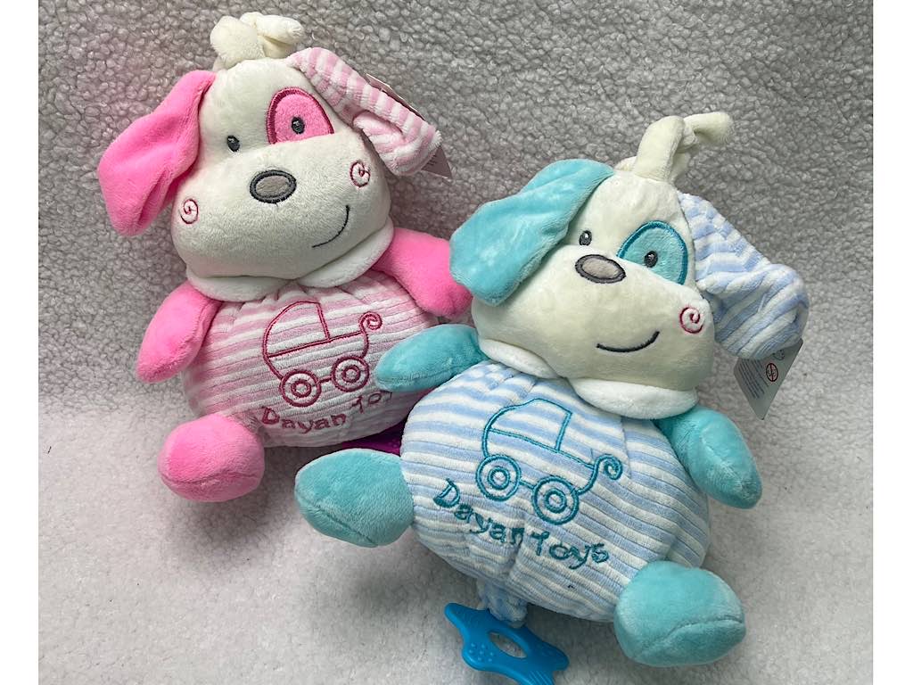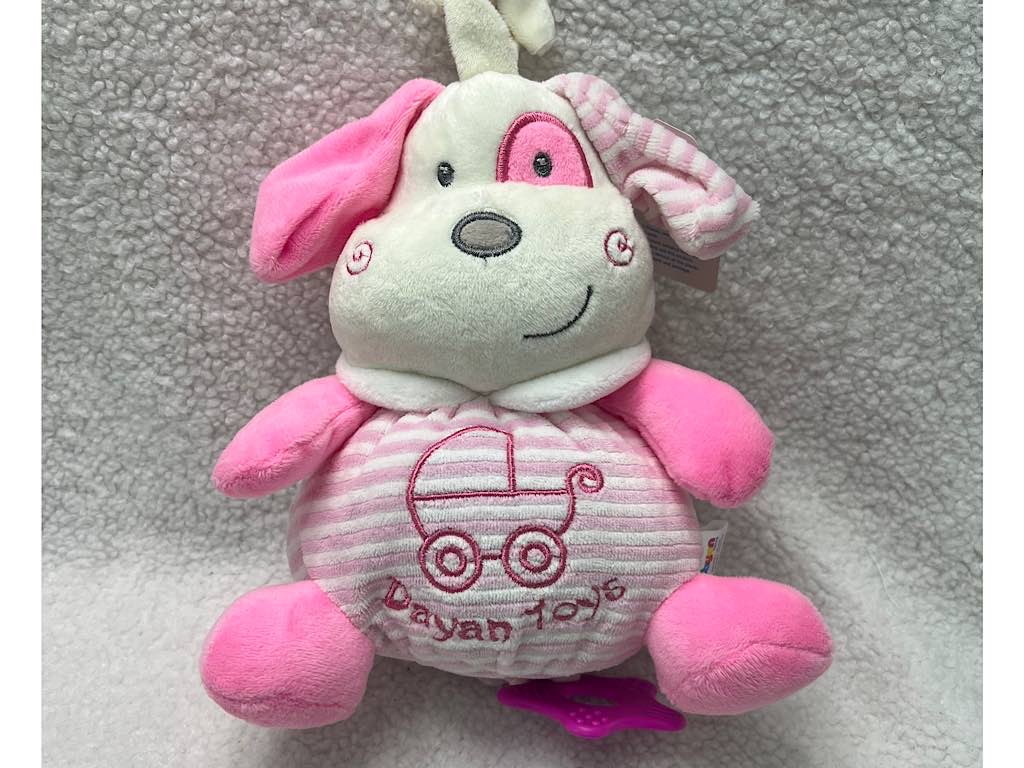عروسک موزیکال طرح سگ راه راه مدل نخ کش موزیکال دایان Dayan و با کشیدن بند ستاره دار پایین عروسک موزیک می زند.