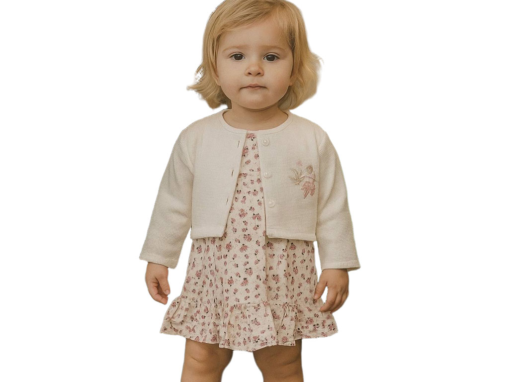 کت و سارافون نوزادی دخترانه طرح گل های صورتی