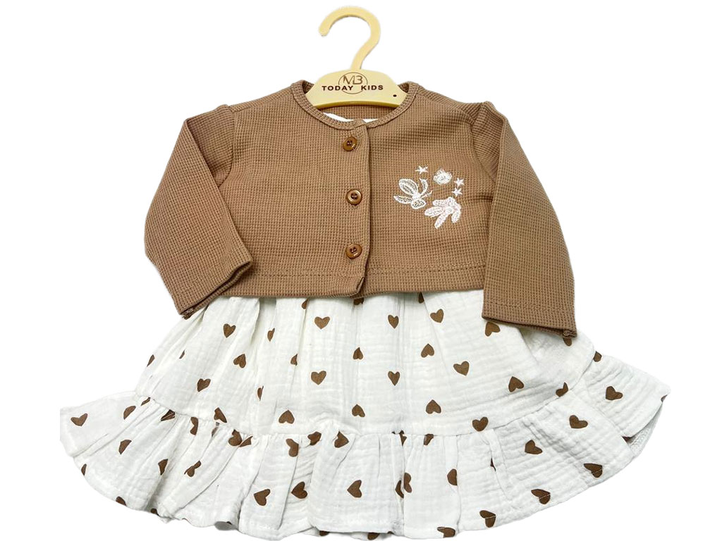کت و سارافون نوزادی دخترانه طرح قلب نسکافه ای