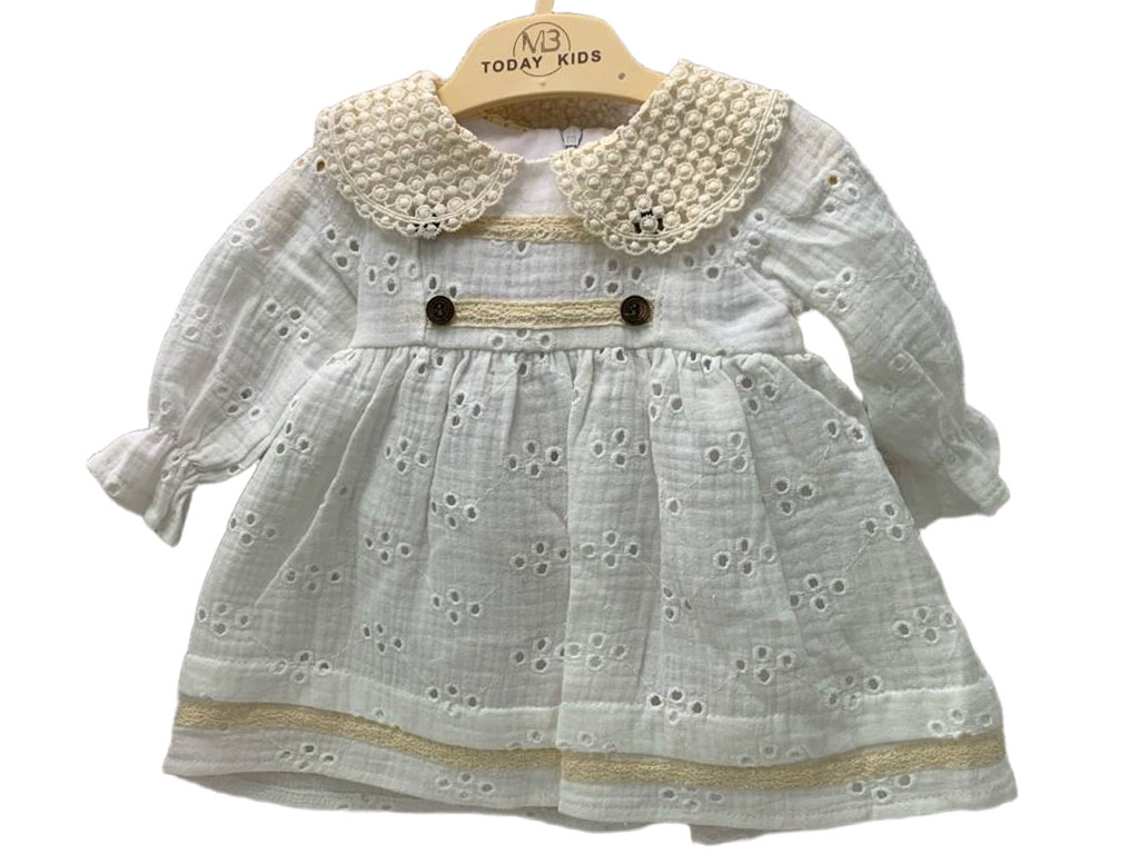 پیراهن خامه دوزی شده نوزادی رنگ سفید