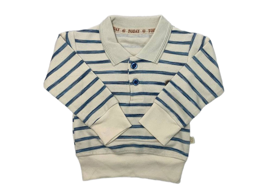 بلوز آستین بلند پسرانه سلانیک یقه دار رنگ آبی طرح راه راه