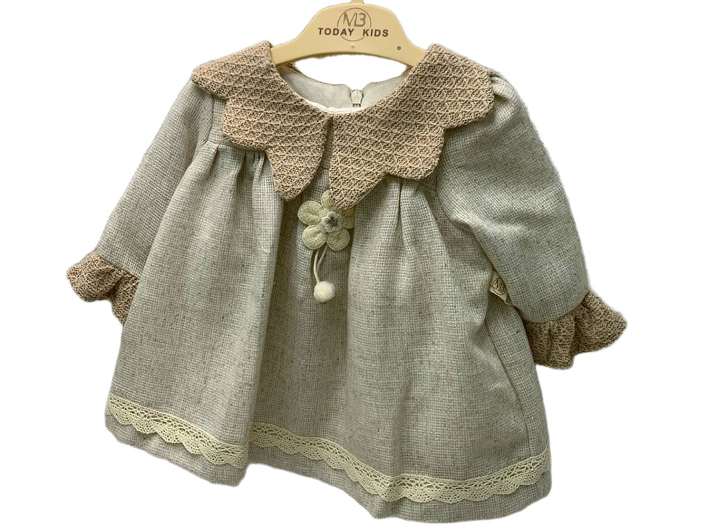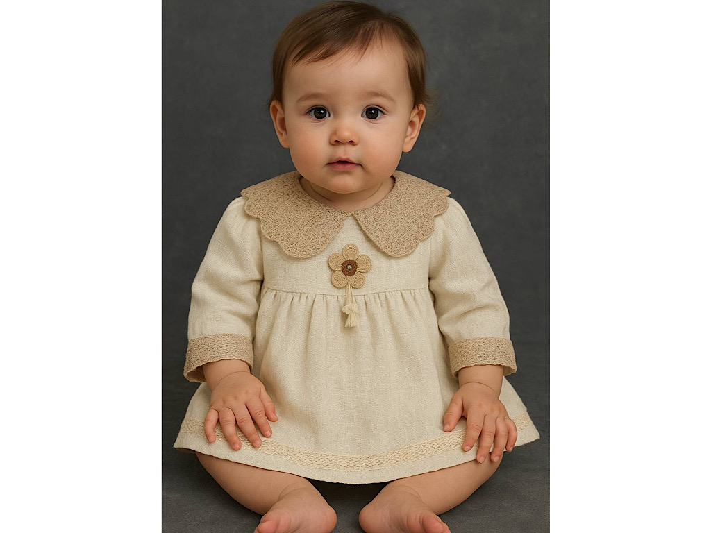 پیراهن آستین بلند دخترانه رنگ کرم روشن طرح گل
