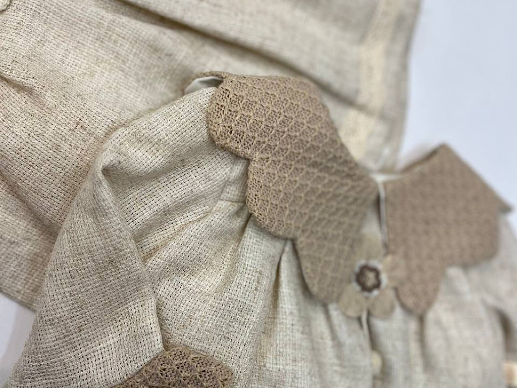 - حاشیه پیراهن گیپور دوزی شده