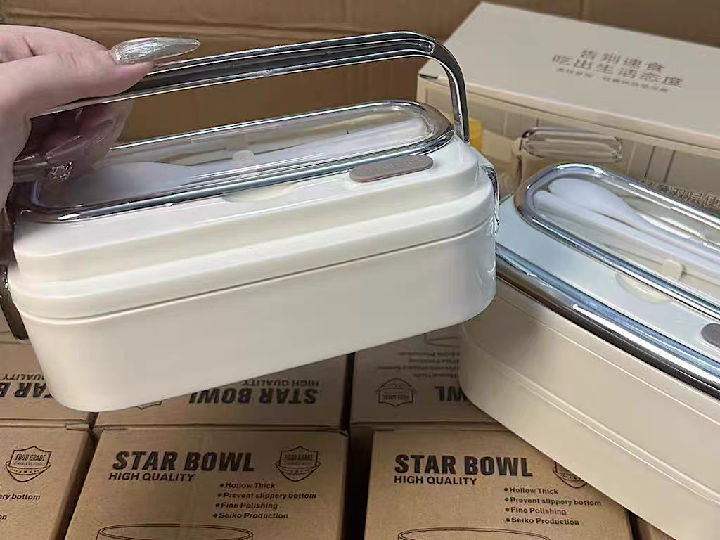 ظرف غذا استیل دارای قاشق و چاپستیک با قفل دوطرفه و دارای دسته