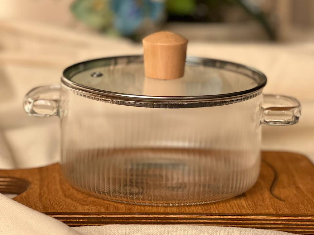 قابلمه پیرکس دسته دار طرح شیار دار حجم 1000 میلی لیتر