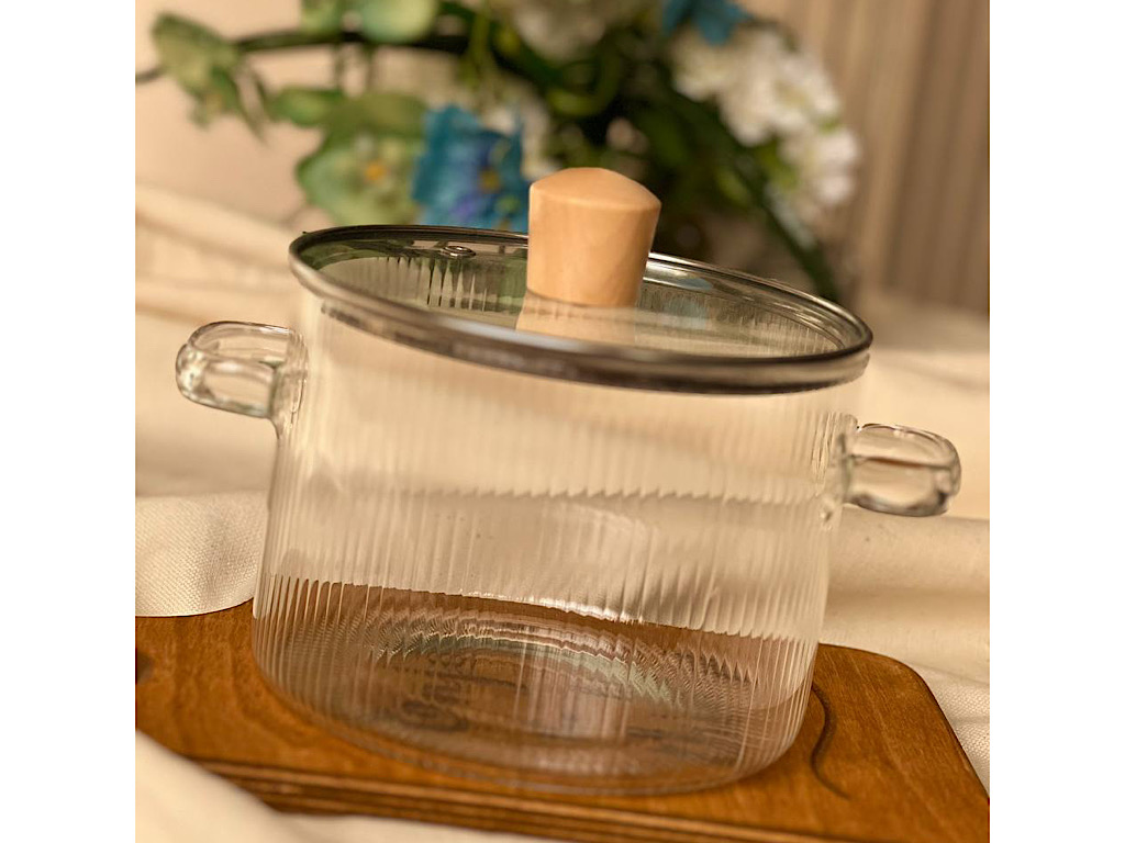 قابلمه پیرکس با حجم 1800 میلی لیتر و طرح شیار دار بر روی آن، به همراه درب و دسته هایی که در دو طرف آن کار شده است. این محصول قابلیت استفاده در مایکروویو ،اجاق برقی و شعله مستقیم آتش را دارد. و در تهیه این محصول از موادی با کیفیت استفاده شده است.