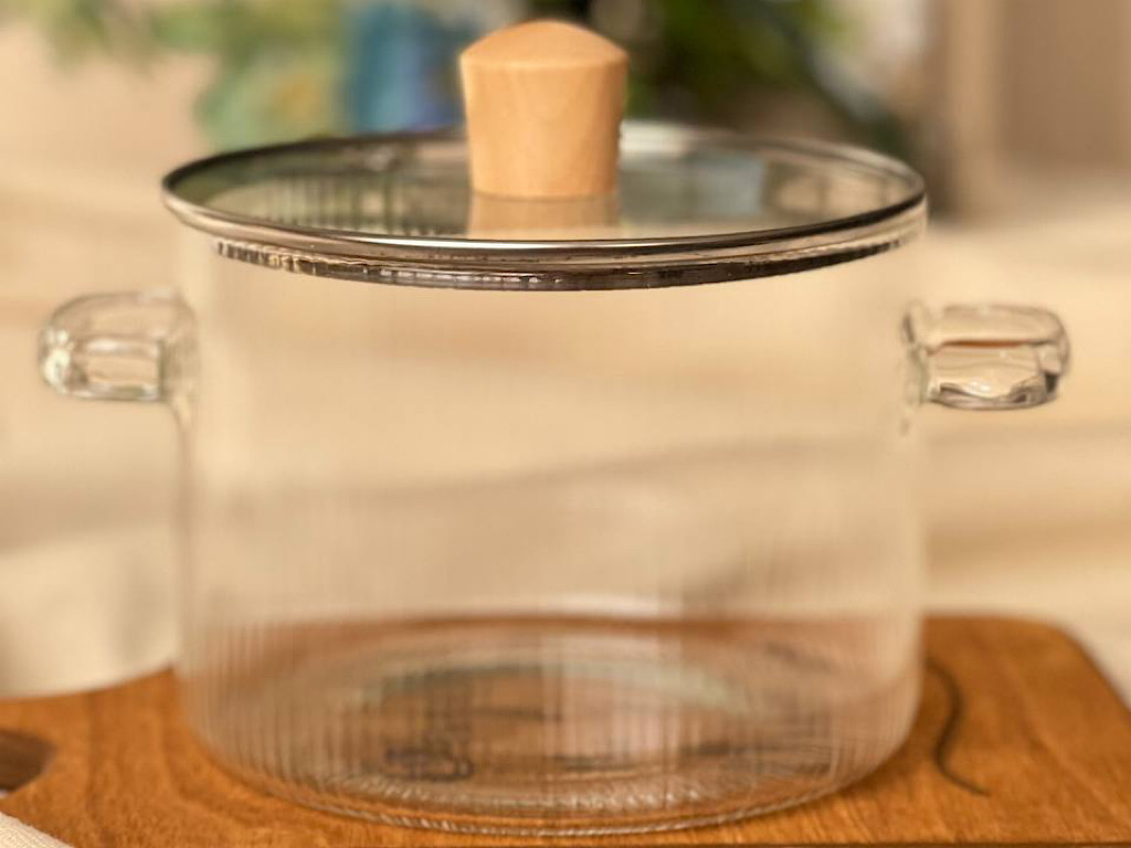 قابلمه پیرکس دسته دار طرح شیار دار حجم 1900 میلی لیتر