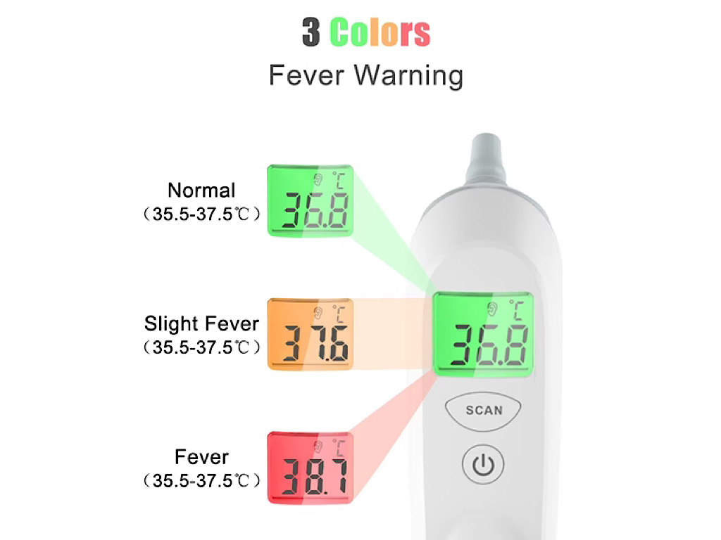 - رنگ صفحه نمایش با توجه به دمای بدن تغییر می کند و به رنگ سبز (نرمال)، آبی (دمای پایین)، قرمز (دمای بالا و تب) می باشد.