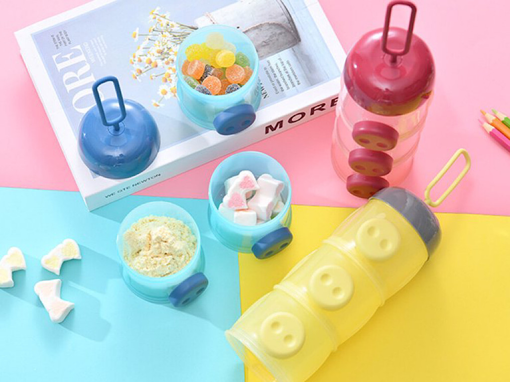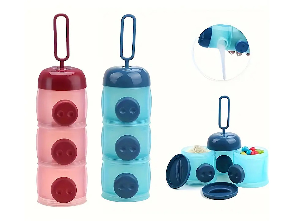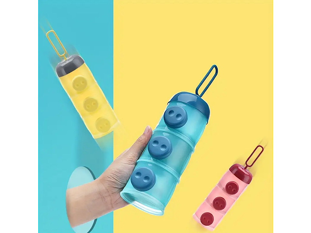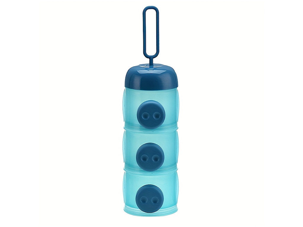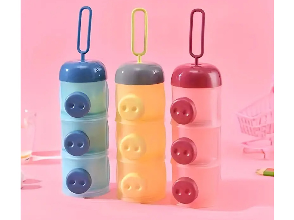 انبار غذا و شیر خشک شفاف، انبار غذای که در سه طبقه طراحی شده و مناسب برای ذخیره و حمل غذای کودک از جمله شیرخشک، سرلاک، میوه و غیره میباشد. میتوان تعداد طبقات این انبار را کم یا جابهجا نموده و یا از هم جدا کرد. این انبار غذا بدون مواد مضر BPA می باشد و سلامتی فرزند دلبندتان کاملا حفظ می شود. در بالای این انبار غذا دسته ای تعبیه شده تا حمل و نقل آن به سهولت انجام پذیرد. این انبار غذا دارای طرح خرس است و هر قطعه در قطعهی زیرین پیچ میشود. این ظرف گزینهای مناسب برای سیسمونی کودک دلبند شما خواهد بود.