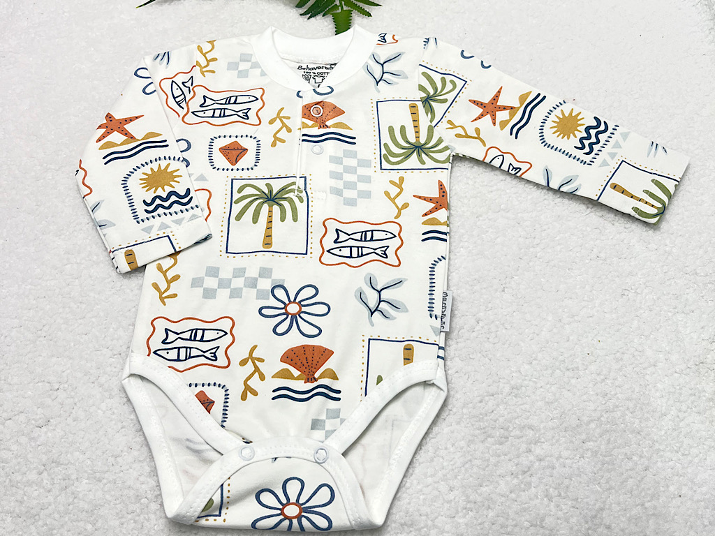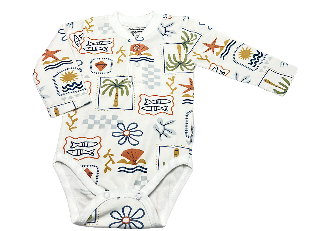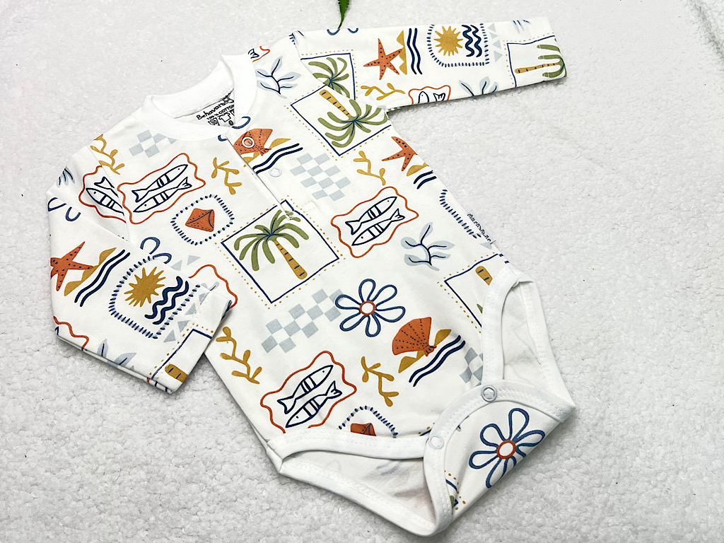 بادی آستین بلند نوزادی طرح هاوایی به آوران behavaran