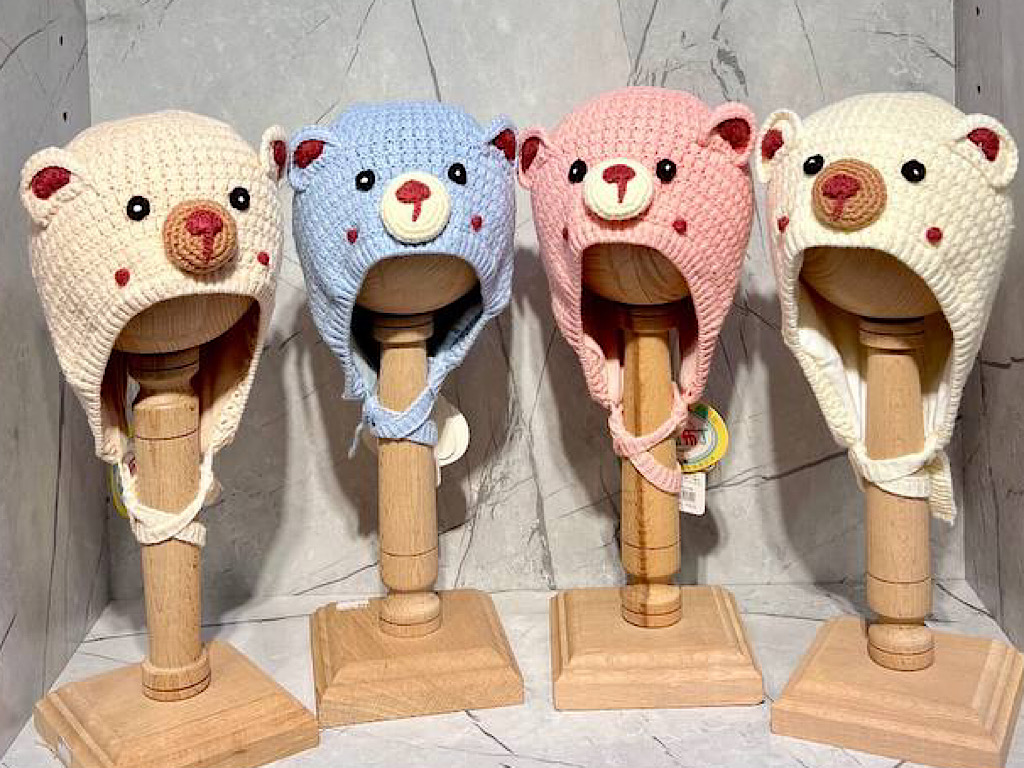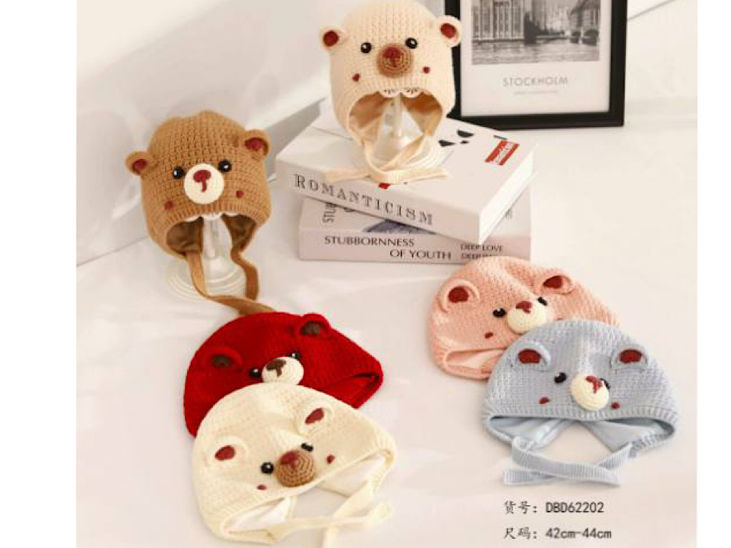 کلاه بافت بند دار طرح تدی برجسته با آستر نخی DLBD
