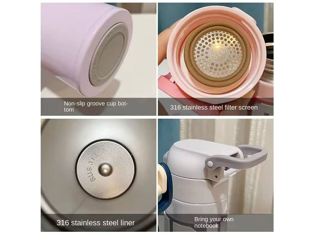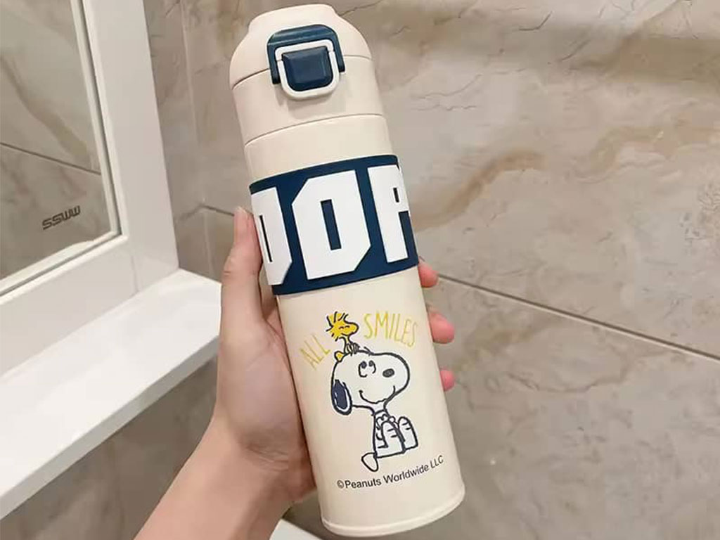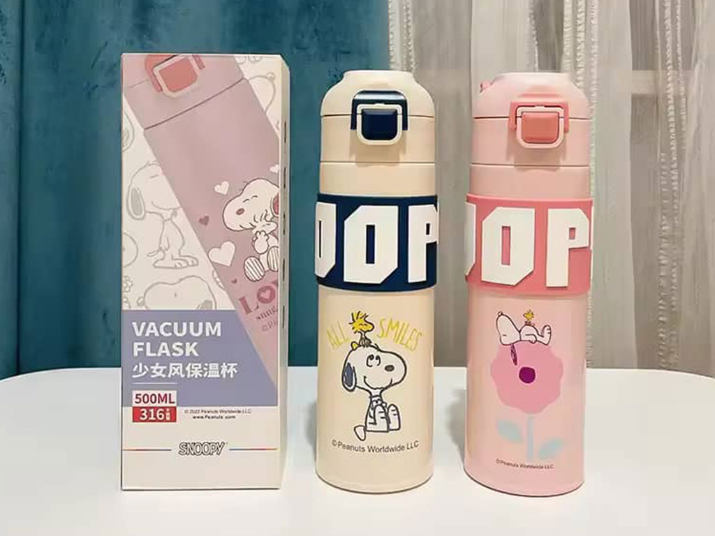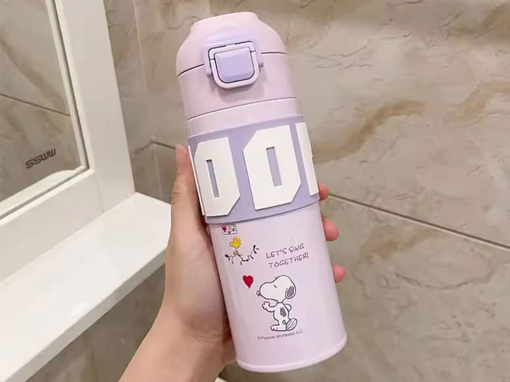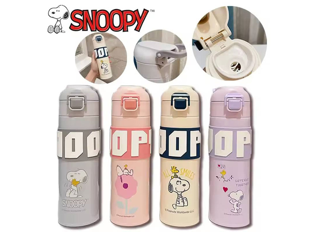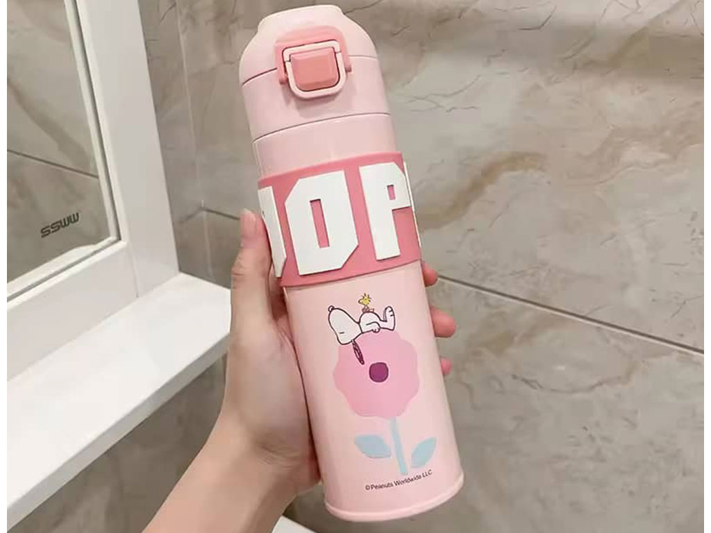 فلاسک استیل دوجداره مدل اسنوپی دخترانه و پسرانه دارای رنگبندی متنوع و جذاب ، جهت نگهداری آب جوش برای تهیه شیر خشک نوزادان و تهیه چای، نسکافه و ..... که حجم 500 میلی لیتر مایعات را درون خود نگه می دارد.