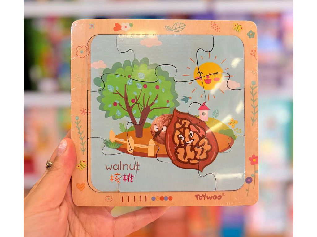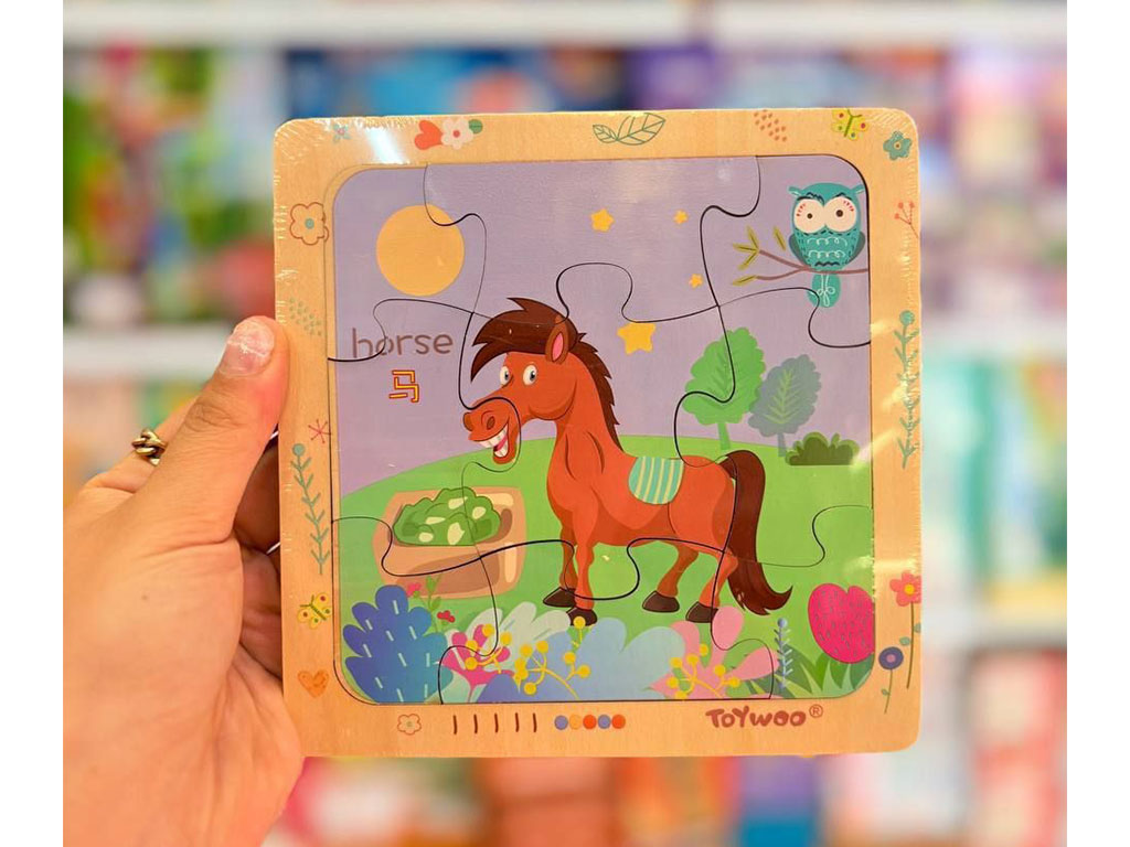 پازل چوبی 9 تکه سایز کوچک با تکه های فانتزی