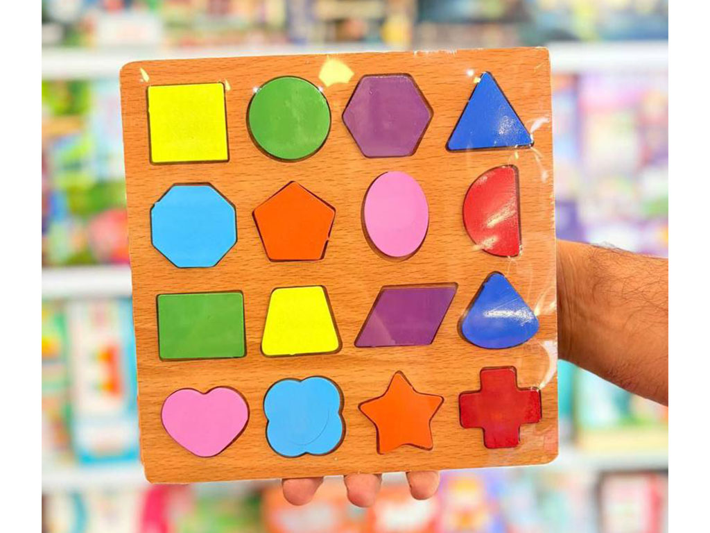 پازل برجسته جاگذاری اشکال طرح دار چوبی 16 تکه