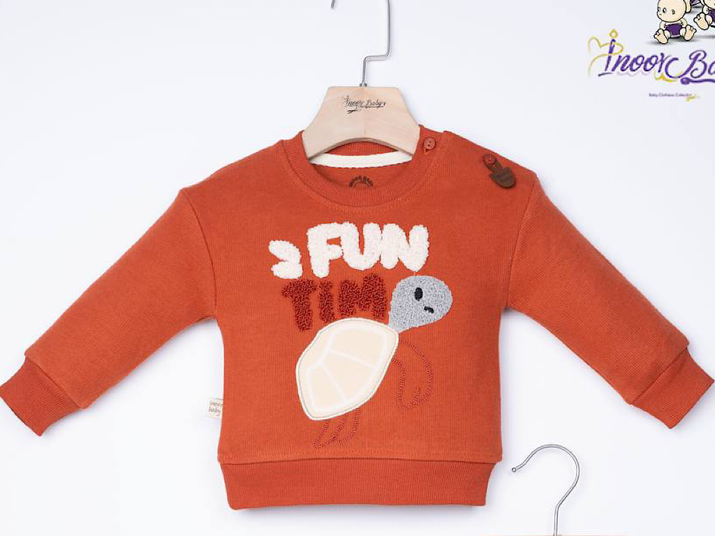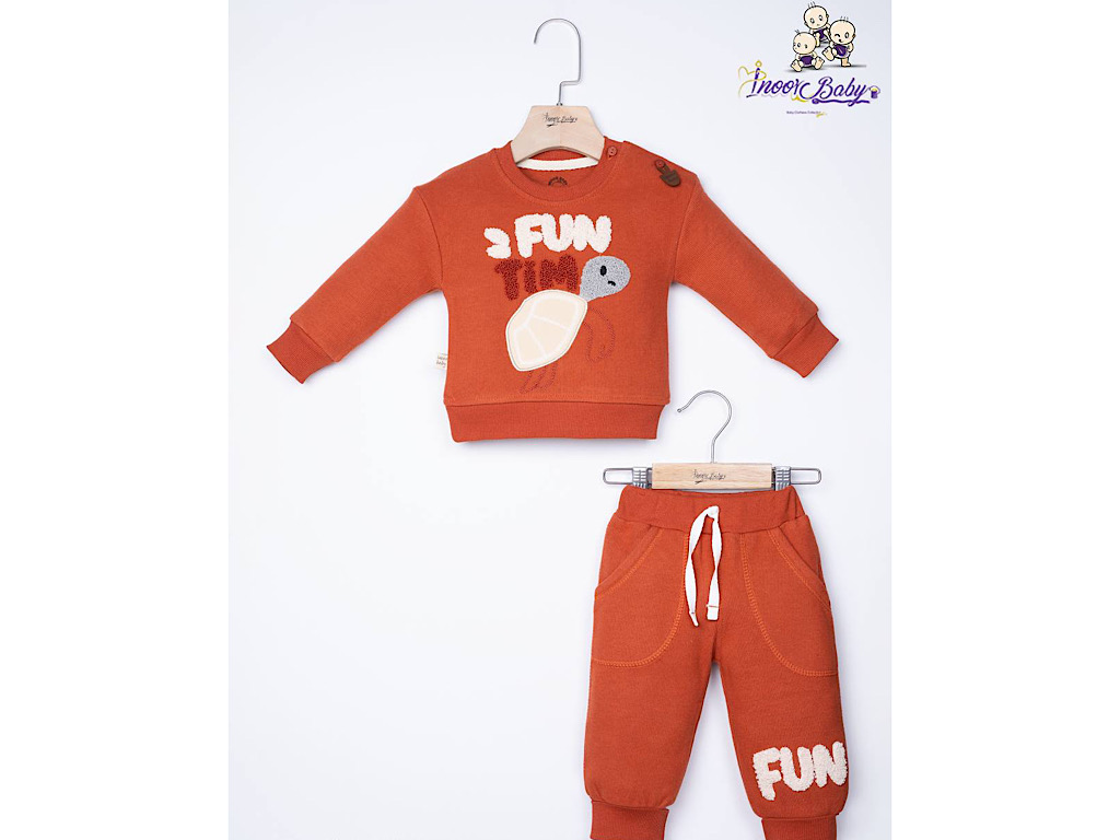 بلوز و شلوار سلانیک رنگ آجری طرح لاک پشت گلدوزی شده آی نور بیبی inoor baby
