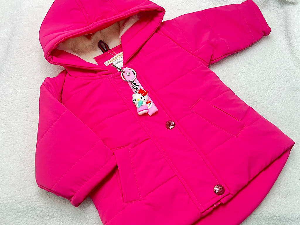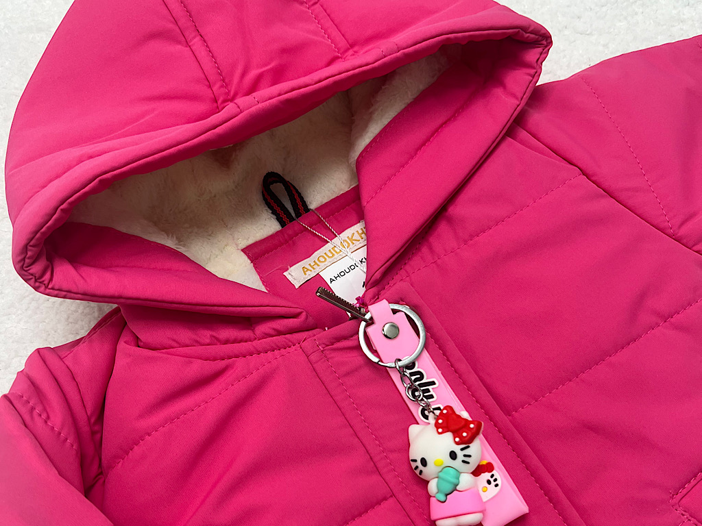 کاپشن کلاهدار توکرکی دخترانه رنگ سرخابی