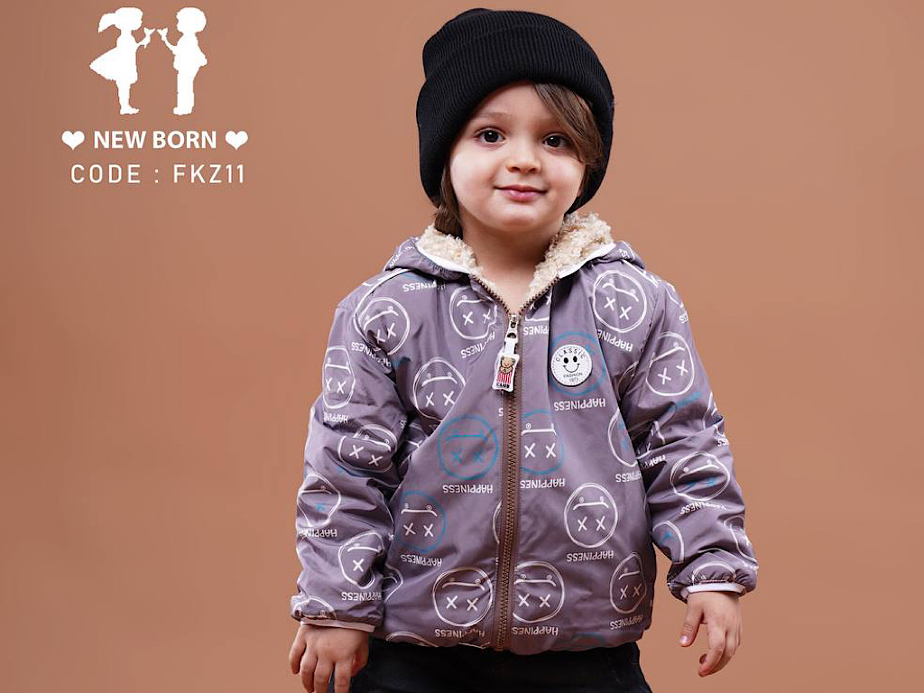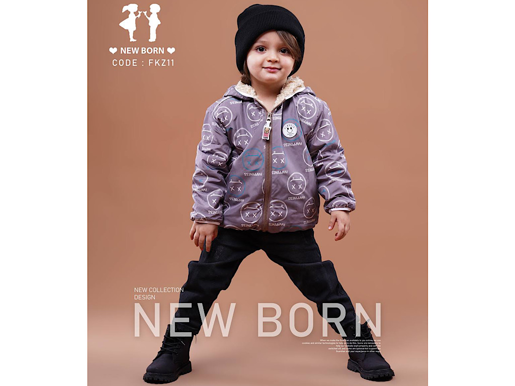 کاپشن کلاهدار توکرکی رنگ فیلی تیره طرح آدمک