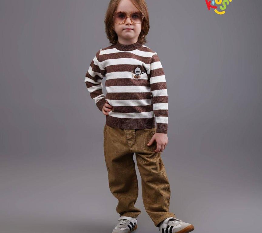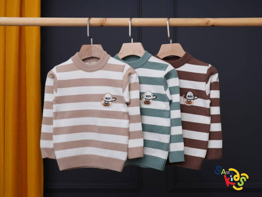 بلوز بافت پسرانه مدل راه راه طرح تدی