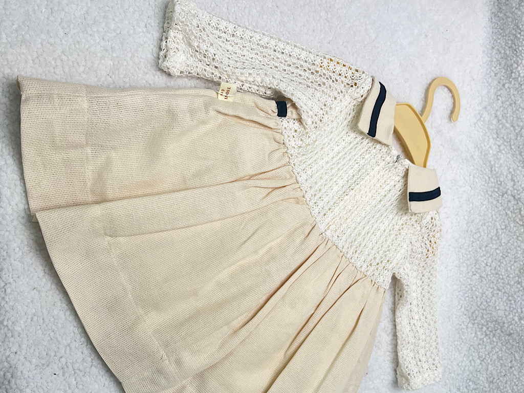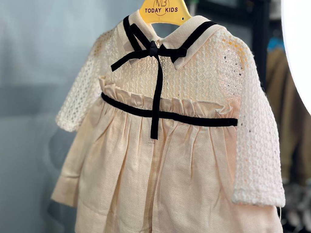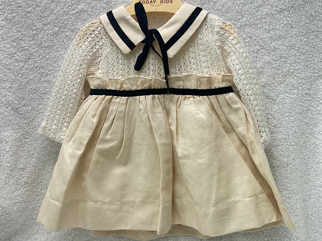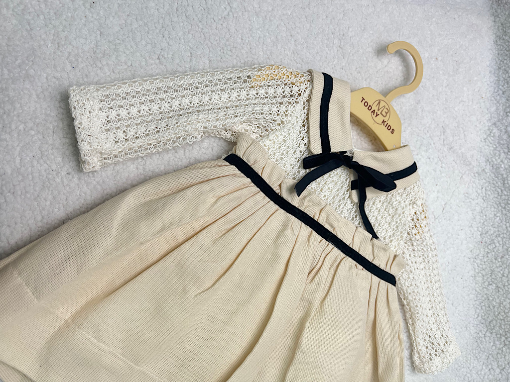 پیراهن دخترانه بالا گیپور روبان مشکی