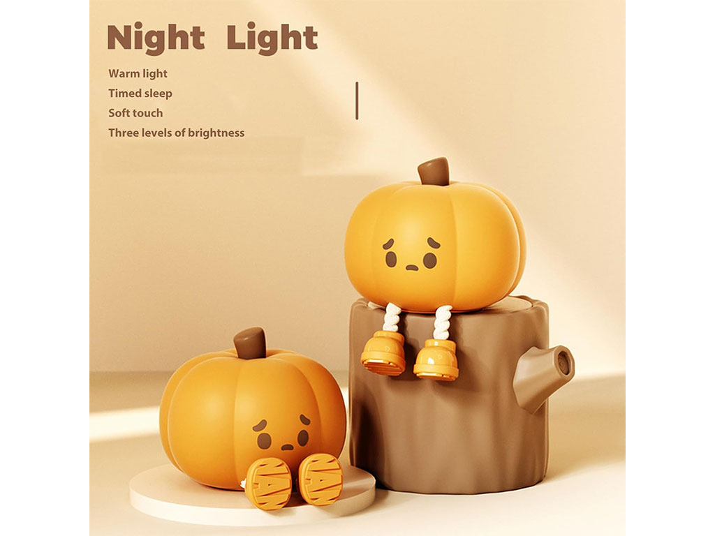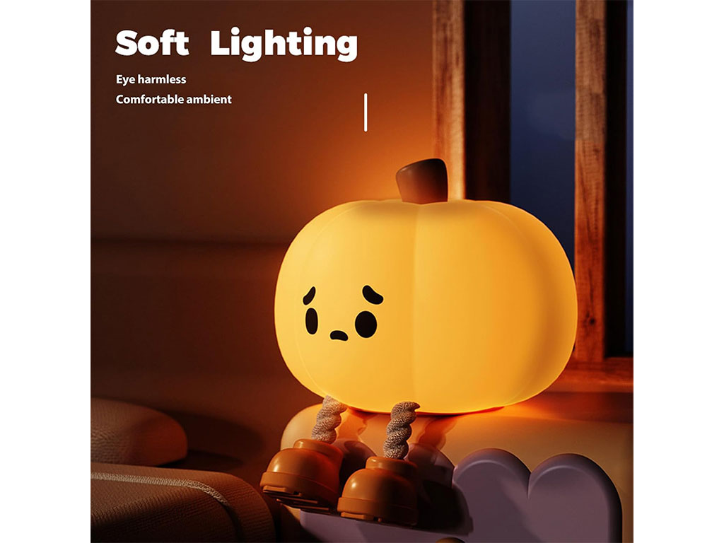 چراغ خواب سیلیکونی، لمسی و شارژی طرح کدو ناراحت