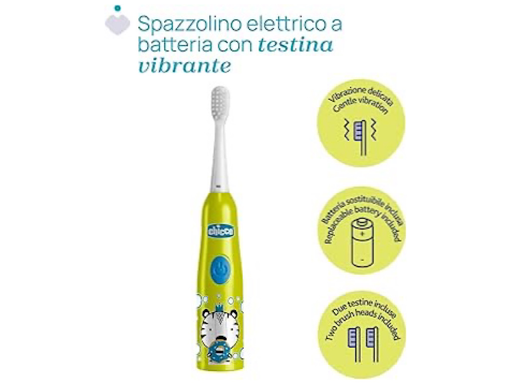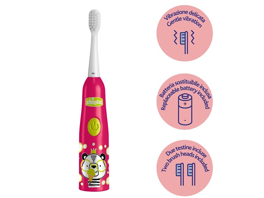 مسواک برقی باتری خور کودک بالای 3 سال به همراه دو فرچه و درپوش چیکو chicco