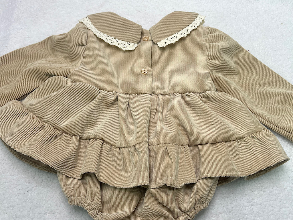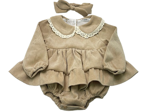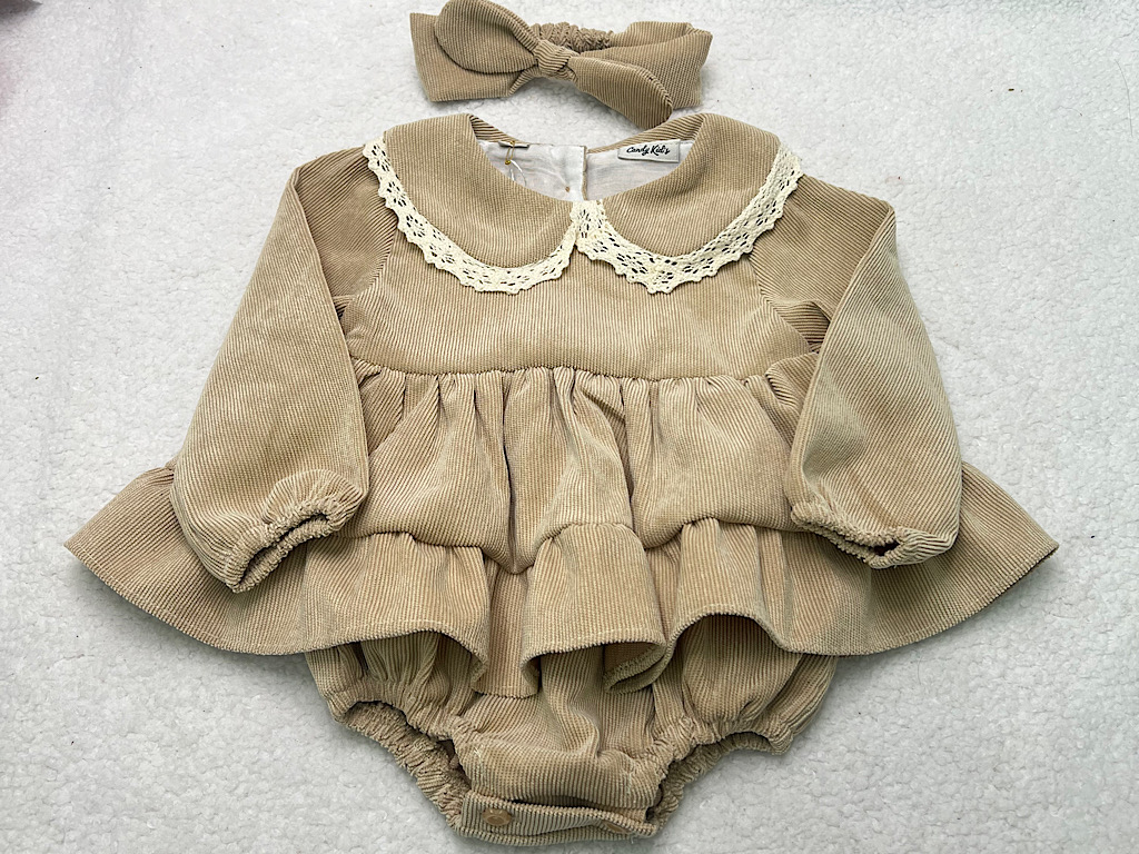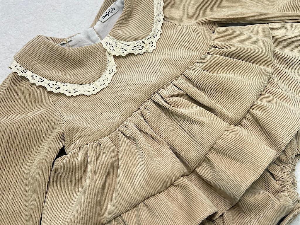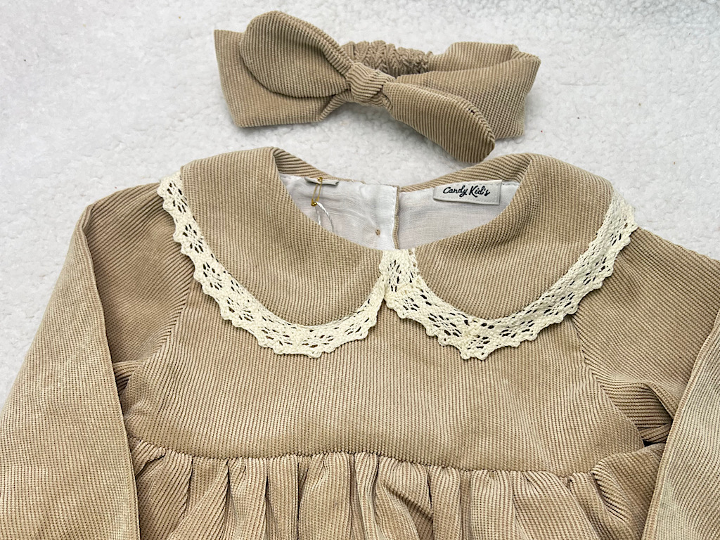 پیراهن زیر دکمه دخترانه جنس مخمل کبریتی کرم تیره