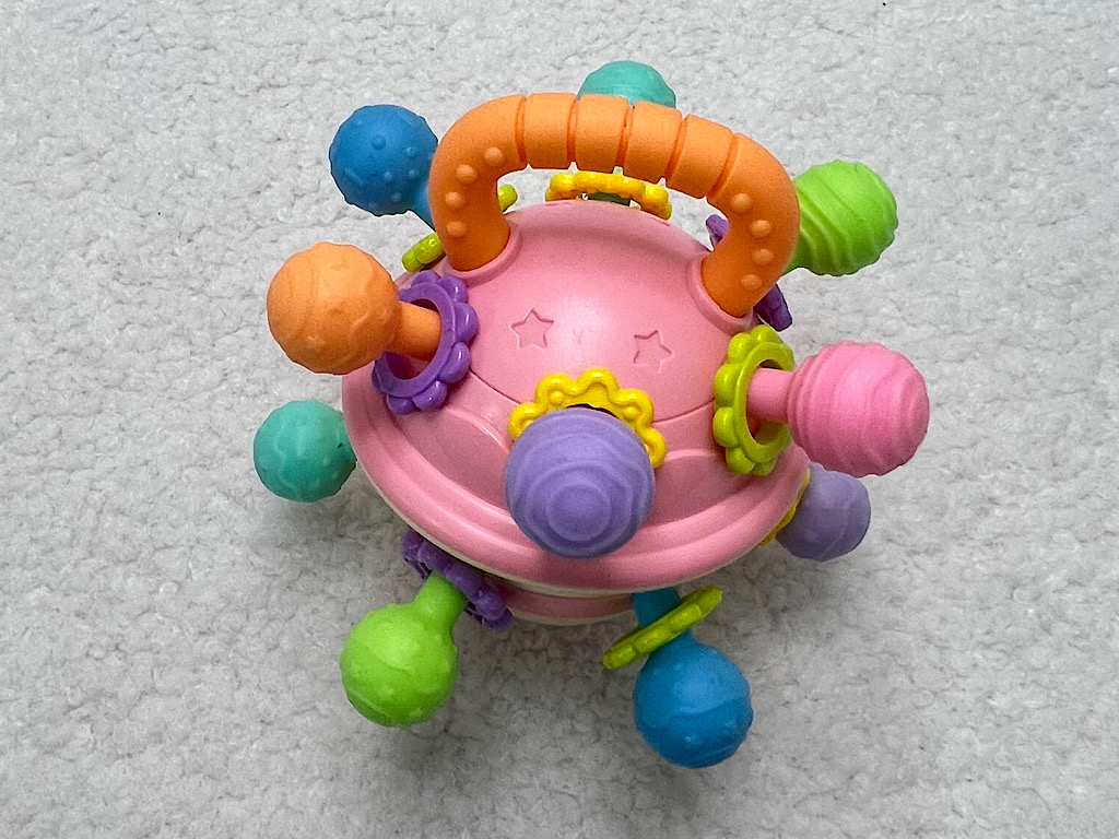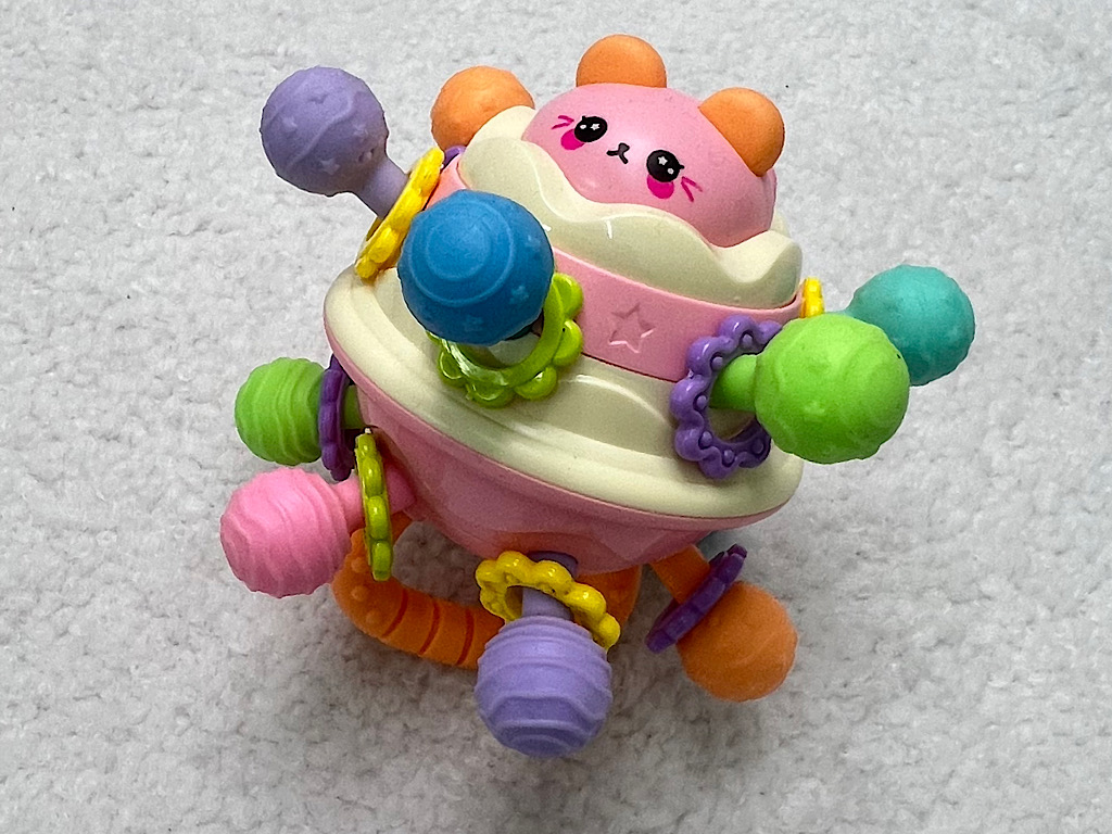 - قسمت میانی قابلیت چرخاندن دارد که به افزایش مهارت دست ورزی کمک می کند و صدای بامزه ای در حین چرخاندن می دهد که به حس شنوایی دلبندتان کمک می کند.