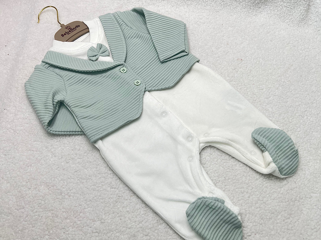 سرهمی جوراب و جلیقه دار مخملی نوزادی پسرانه بب لینا BEBELINNA