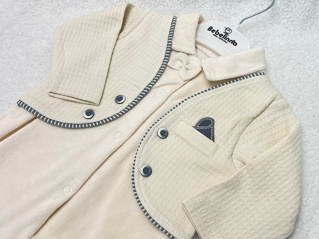 سرهمی جوراب و جلیقه دار مخملی نوزادی پسرانه بب لینا BEBELINNA