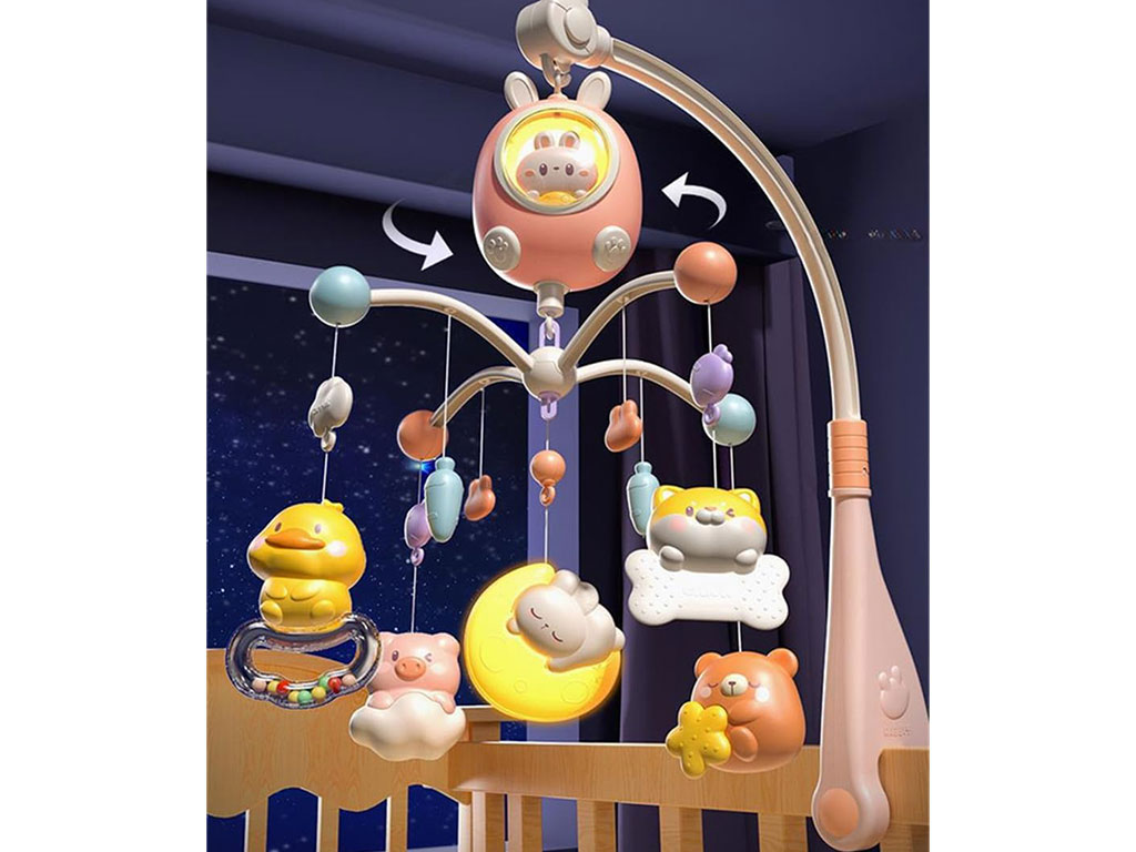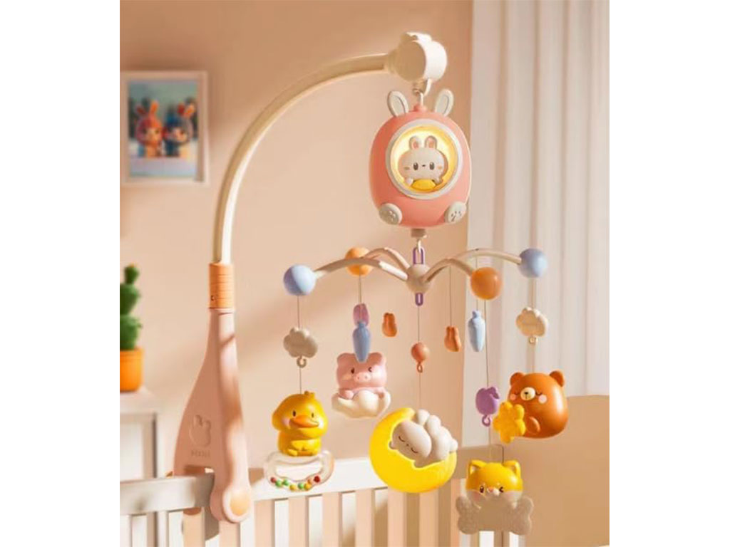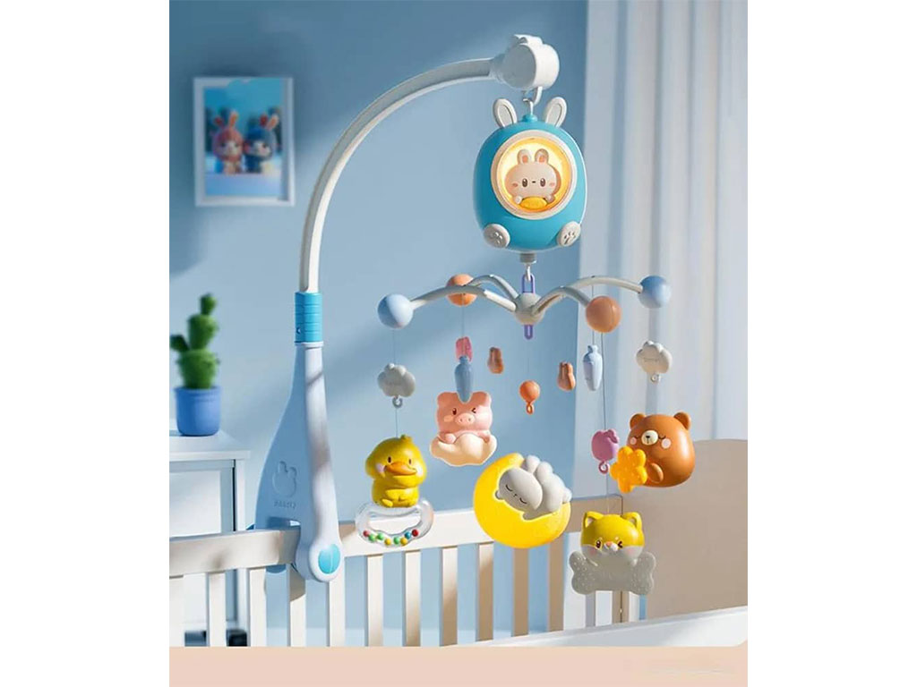 آویز تخت موزیکال و گردان نوزادی طرح خرگوش