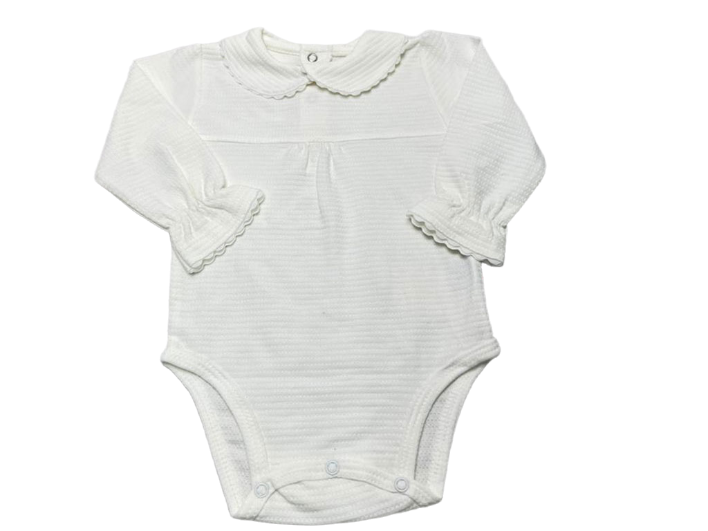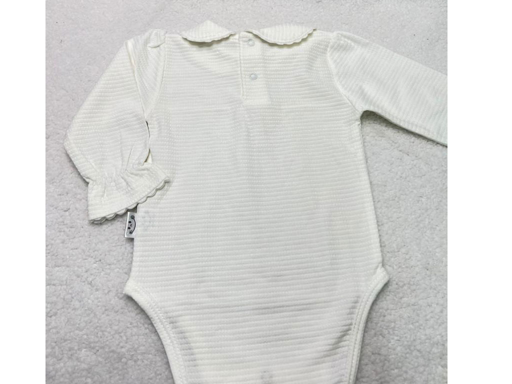 بادی آستین بلند نوزادی دخترانه رنگ شیری یقه BB