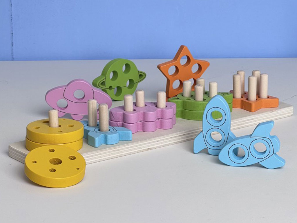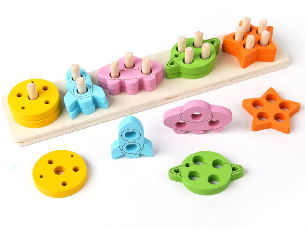 اشکال چوبی را از ستون ها خارج کنید و از کودک بخواهید اشکال چوبی را با توجه به شکل و اندازه در ستون ها جاگذاری کند.
