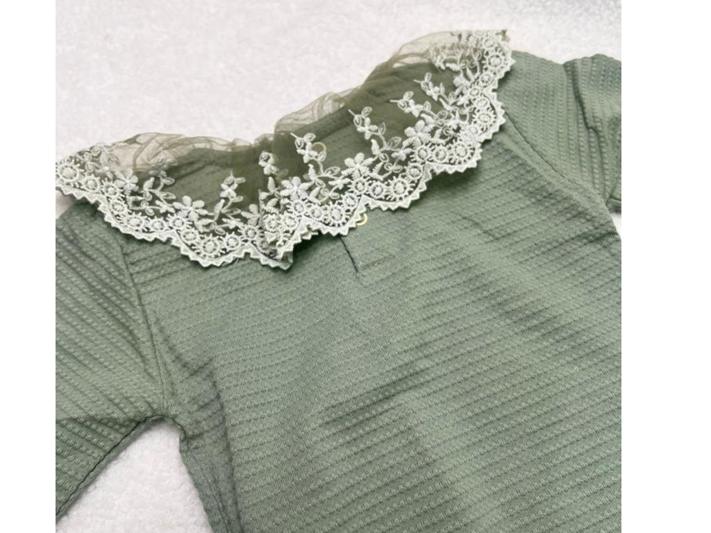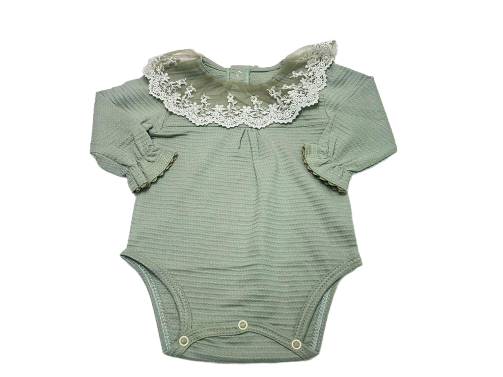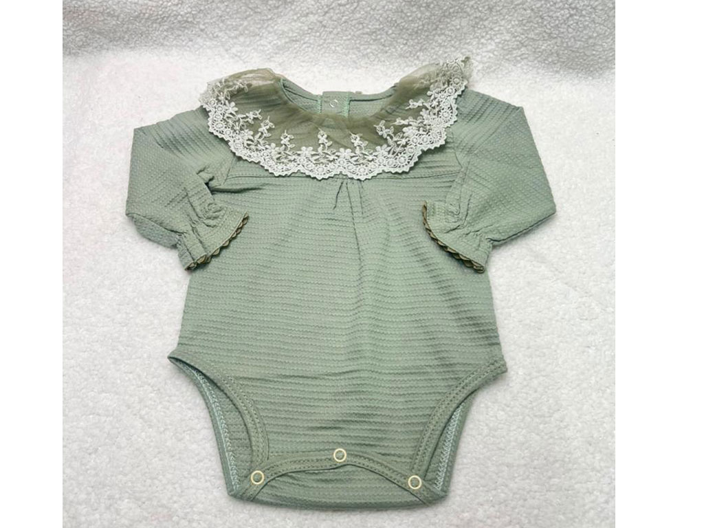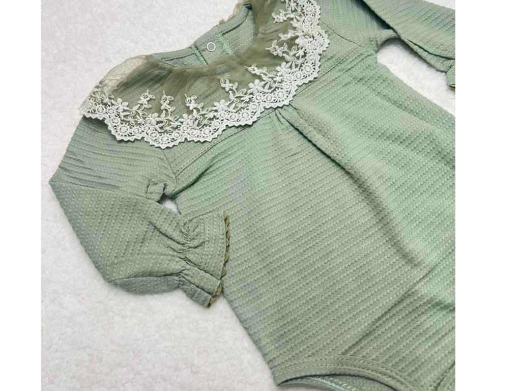 بادی آستین بلند نوزادی دخترانه رنگ سبز یقه توری
