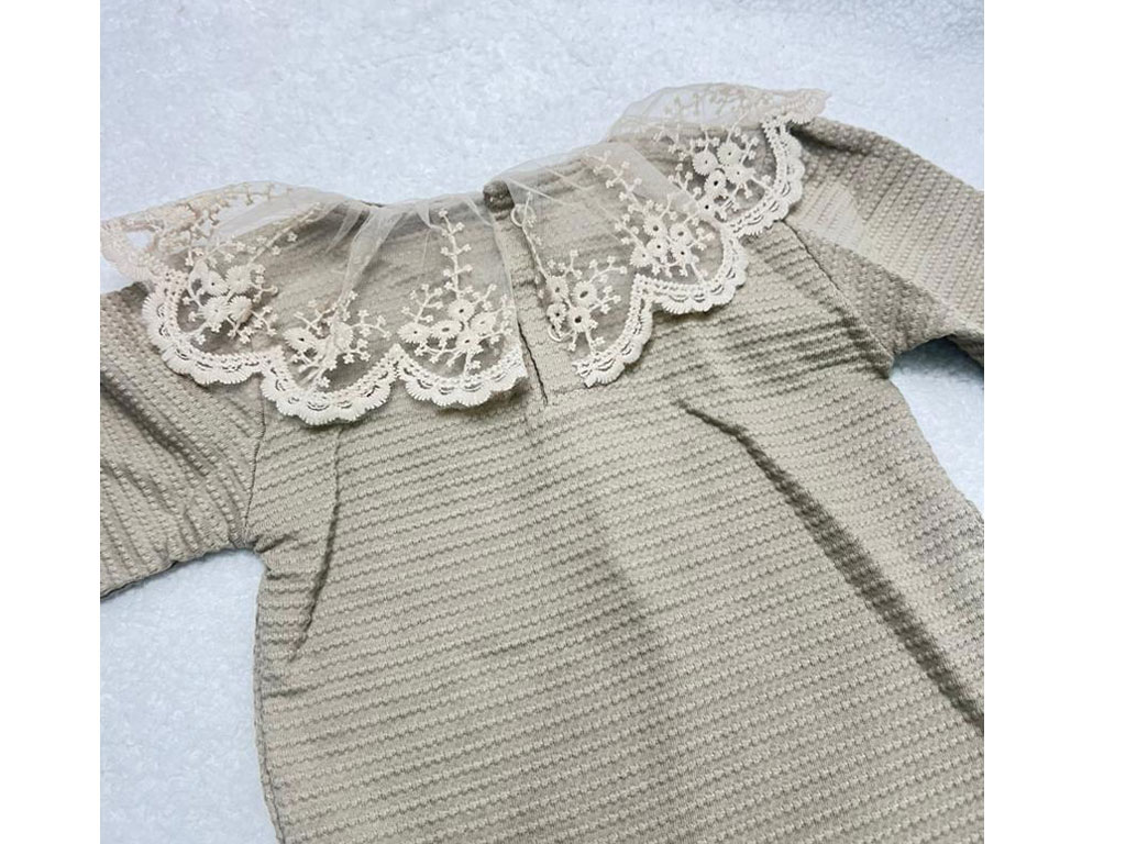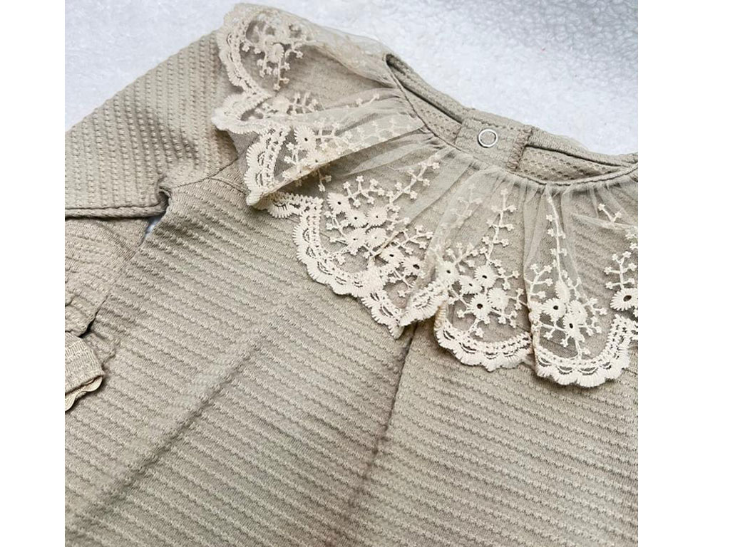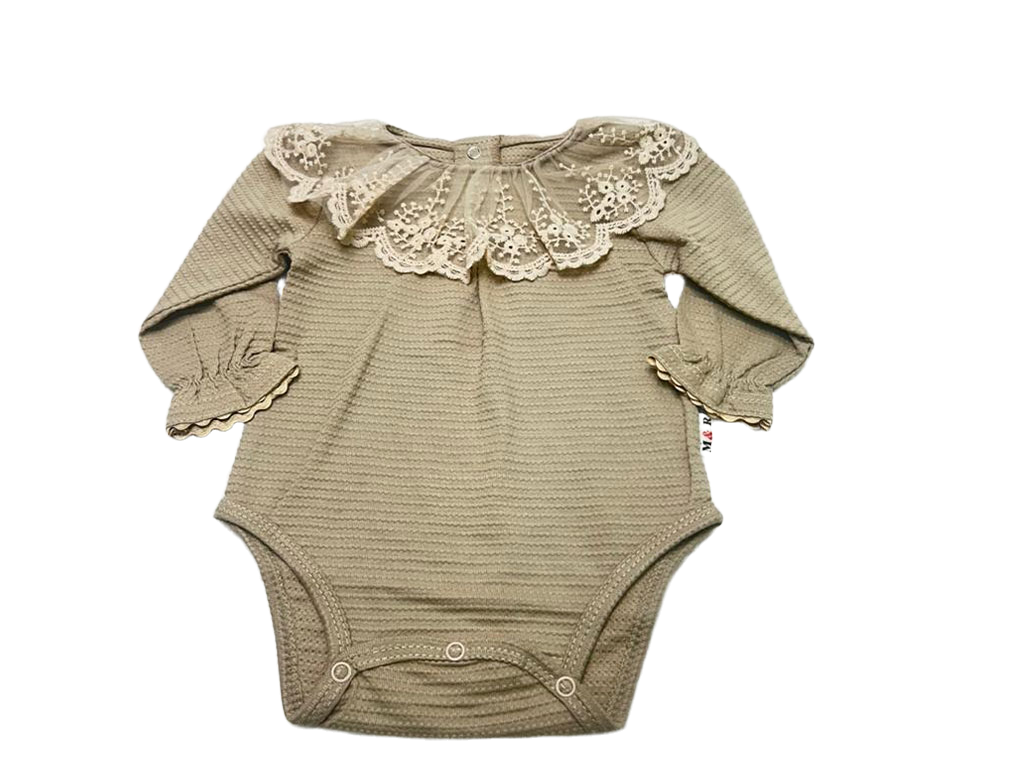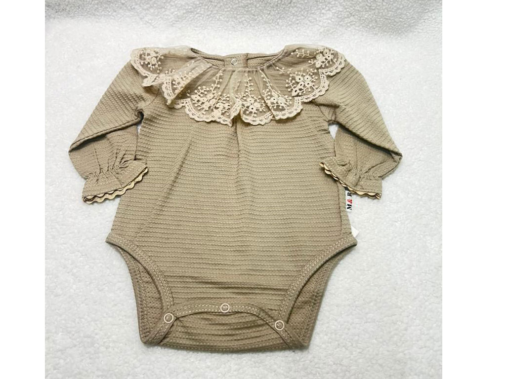 بادی آستین بلند نوزادی دخترانه رنگ نسکافه ای یقه توری