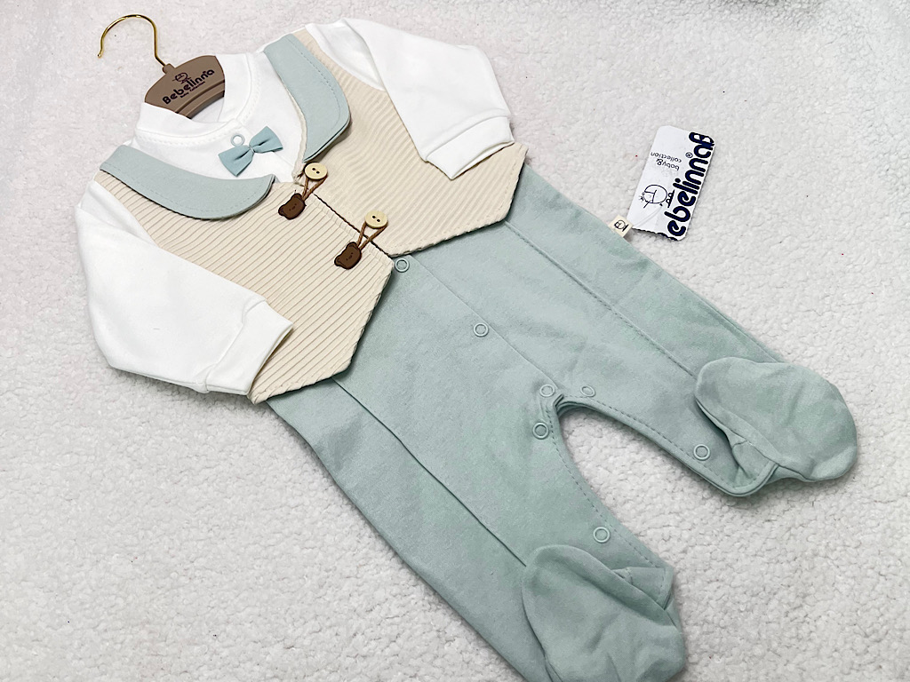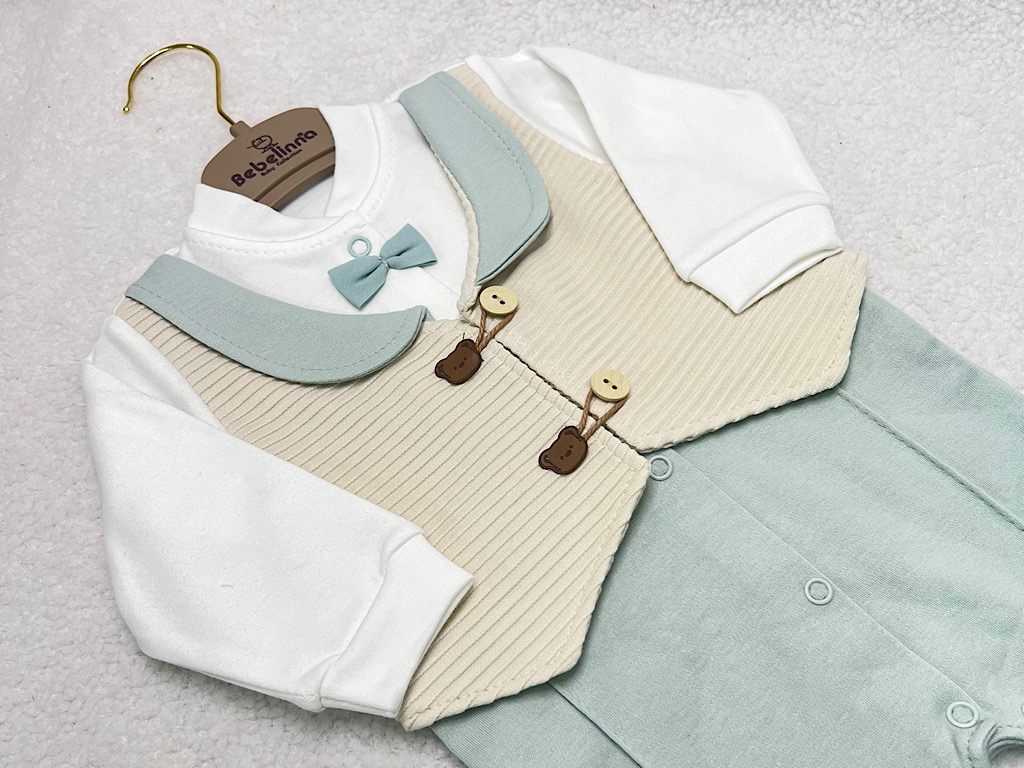 سرهمی جوراب و جلیقه دار نوزادی پسرانه طرح تدی بب لینا BEBELINNA