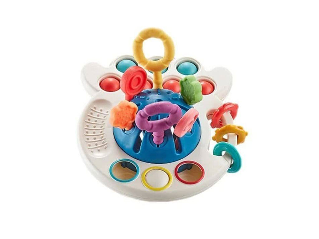 بیزی کیوب یا بیزی بال جغجغه ای دندانگیر و پاپت دار 4 در 1 اسباب بازی