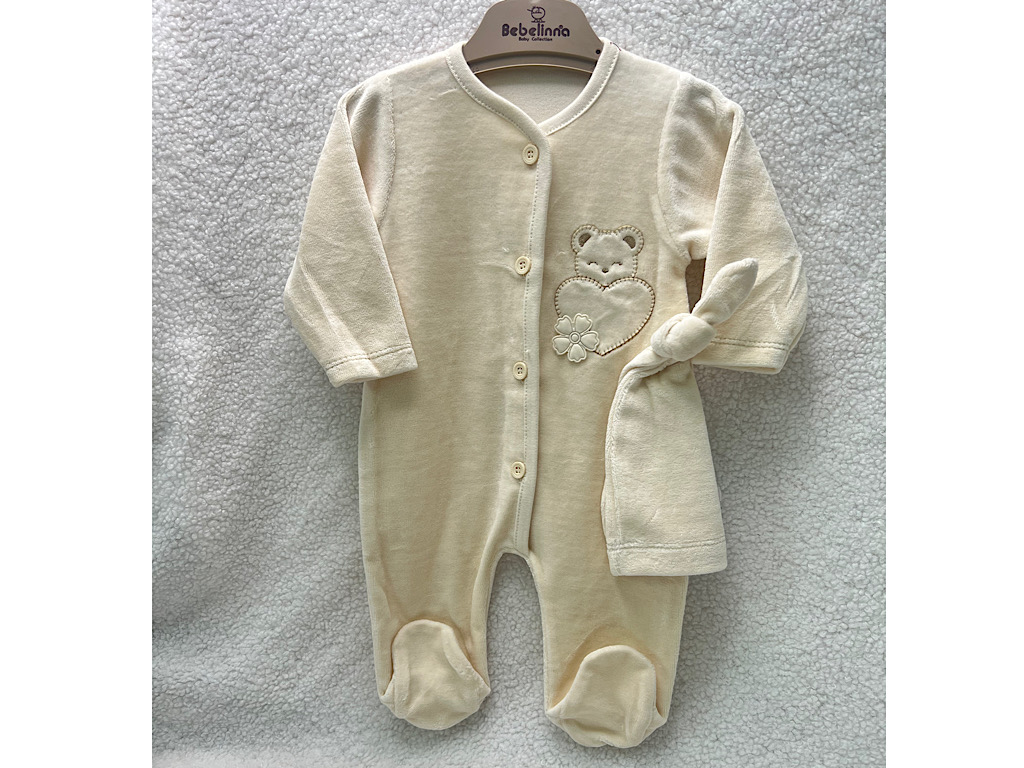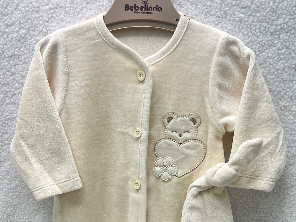 سرهمی جورابدار با کلاه نوزادی طرح تدی و قلب بب لینا BEBELINNA