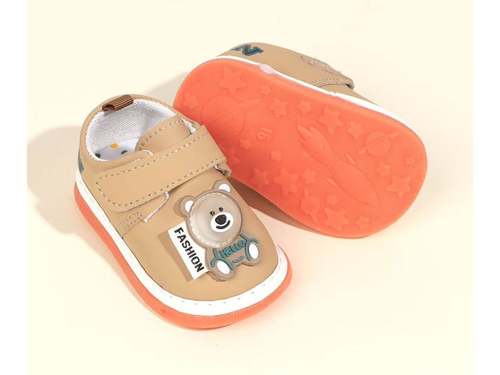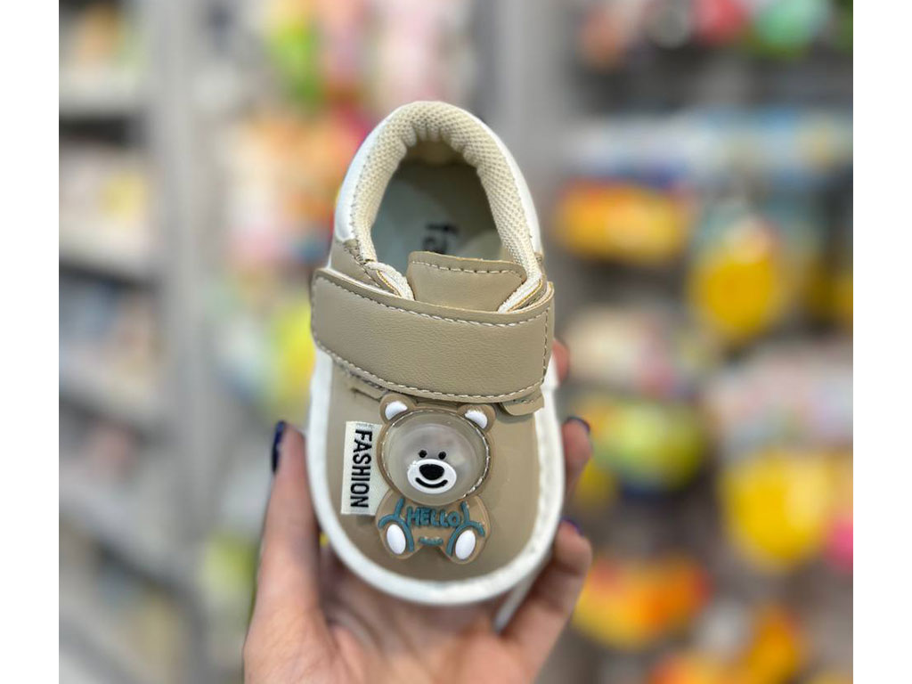 کفش سوتی و جغجغه ای نوزادی رنگ نسکافه ای طرح خرس برجسته