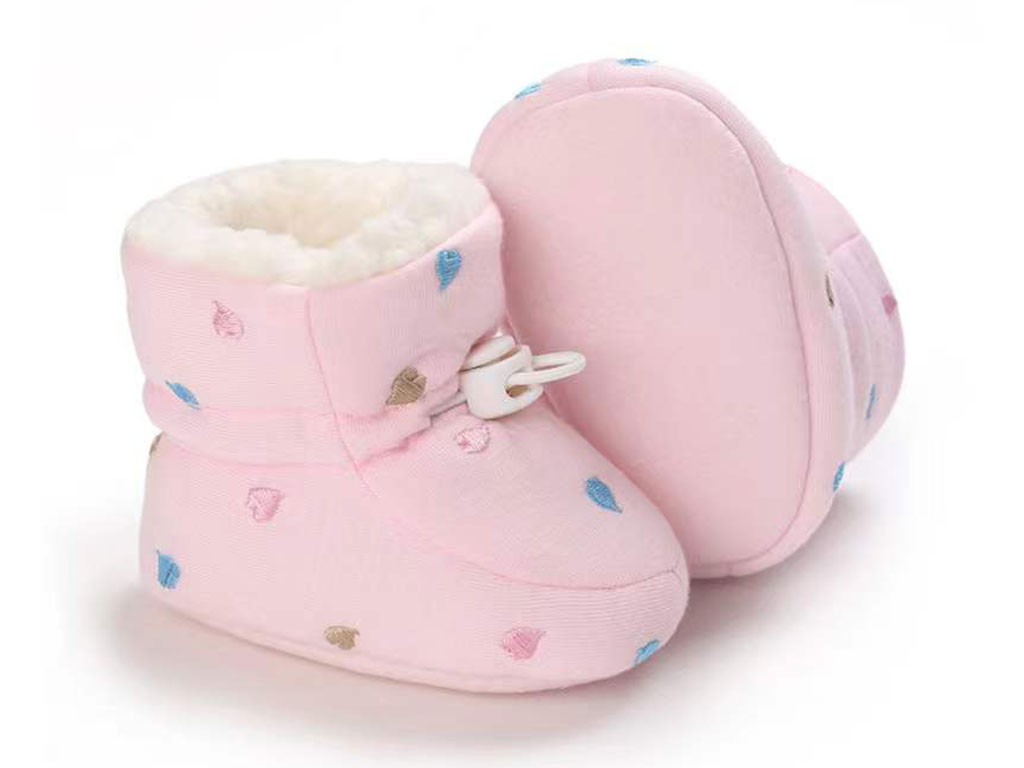 پاپوش ساق دار زمستانی استپ دار توکرکی رنگ صورتی طرح قلب رنگی