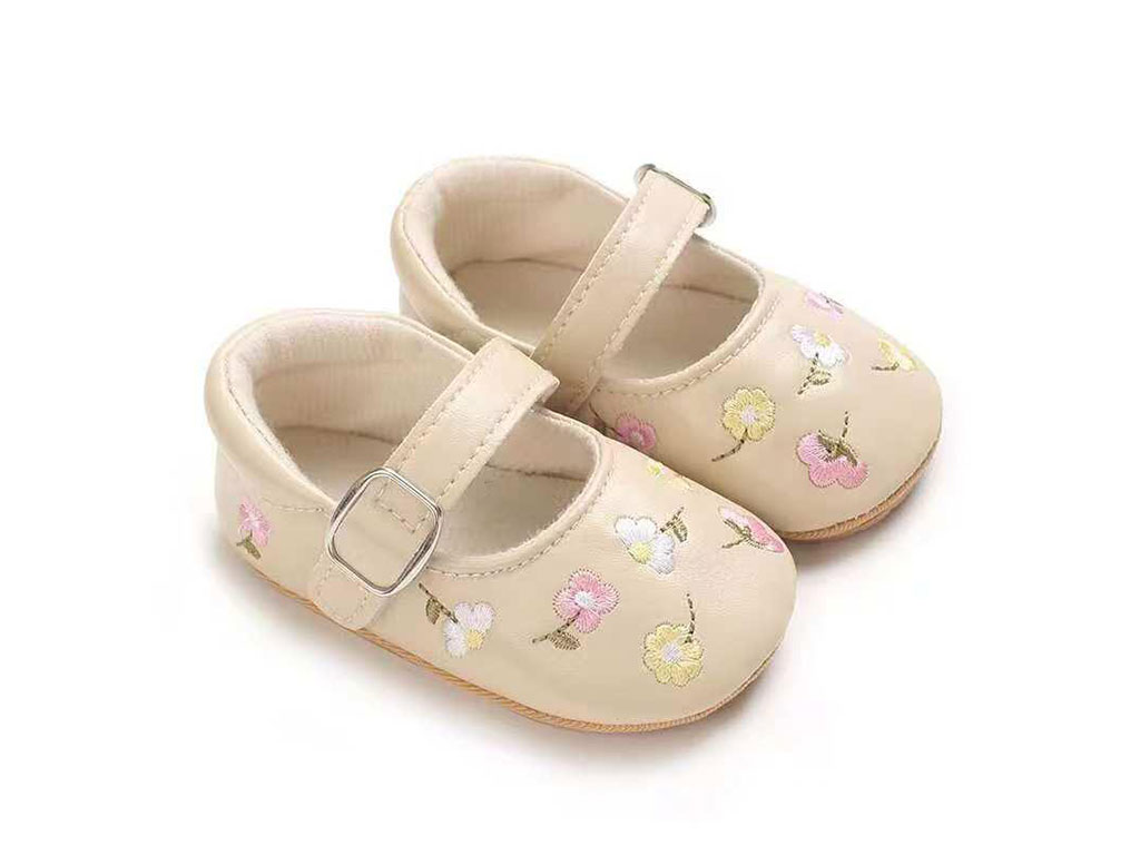 پاپوش استپ دار نوزادی رنگ نسکافه ای طرح گل های رنگارنگ