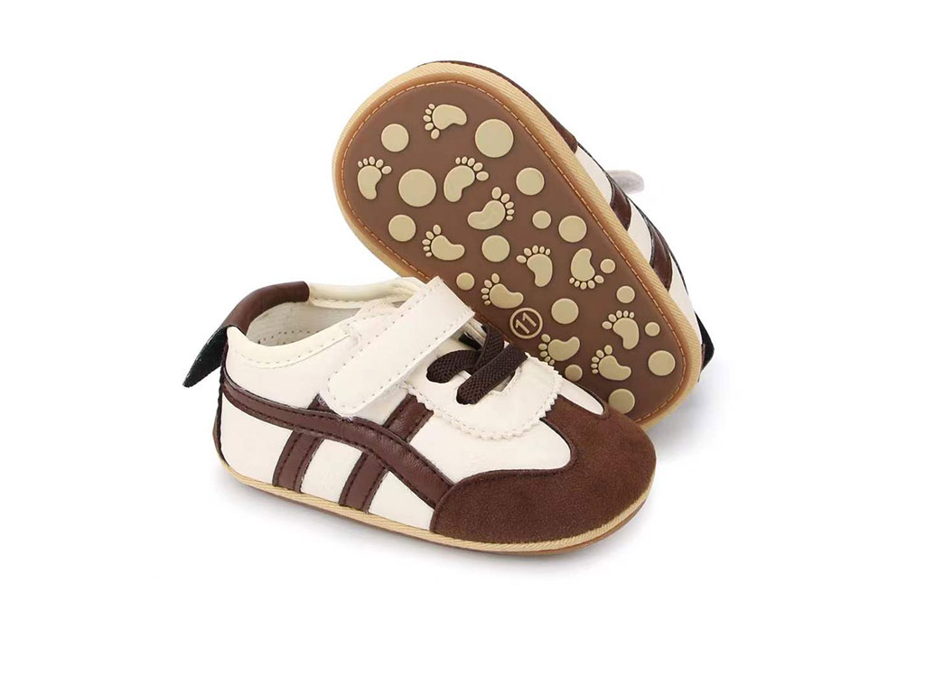 پاپوش استپ دار نوزادی رنگ شیری طرح خط دار قهوه ای