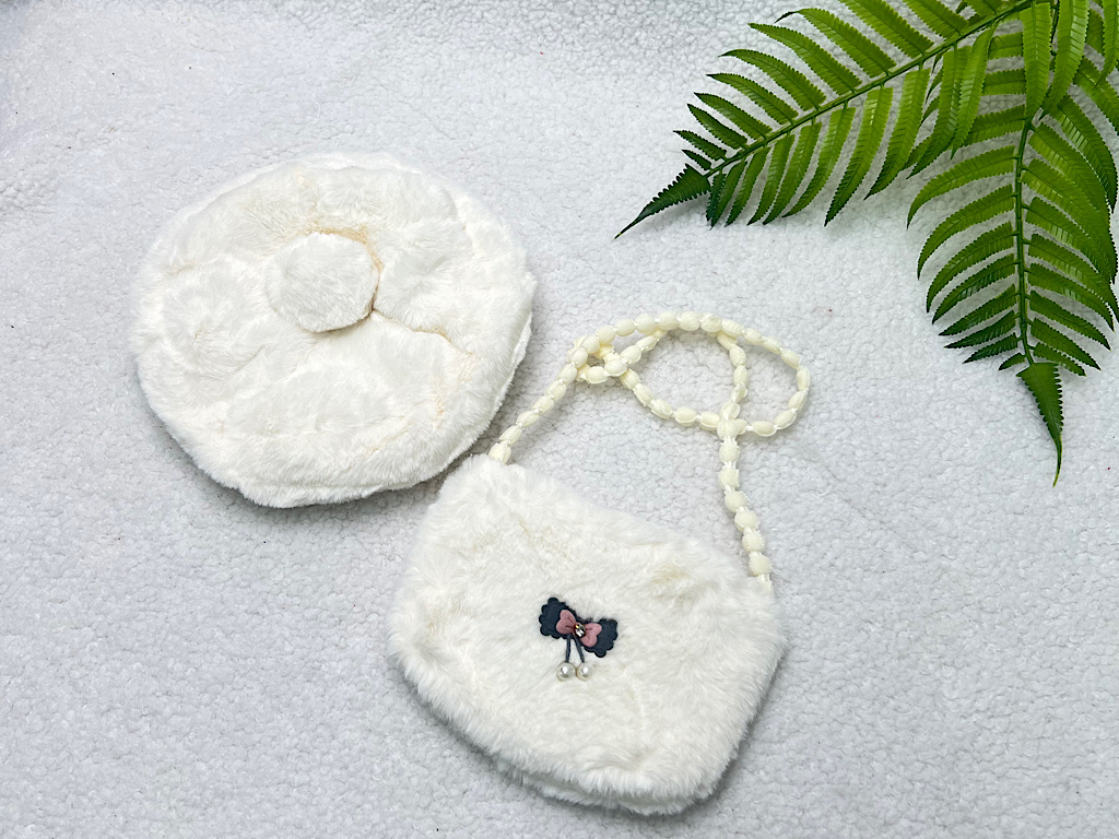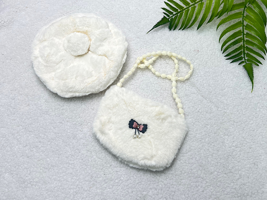 کاپشن طرح شنل با کلاه و کیف شیری رنگ M.M.D