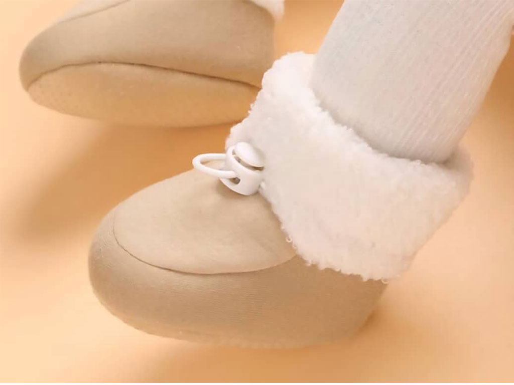 پاپوش ساق دار زمستانی استپ دار توکرکی رنگ کرم طرح دور پشمی