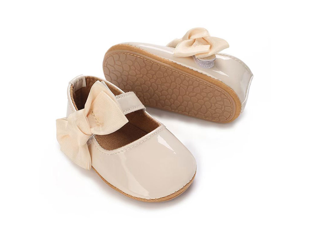 پاپوش نوزادی کرم رنگ دخترانه پاپیون توری