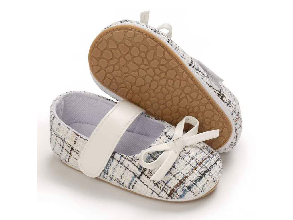 پاپوش نوزادی استپ دار مدل چسبی پاپیون دار طرح چهارخانه ریز