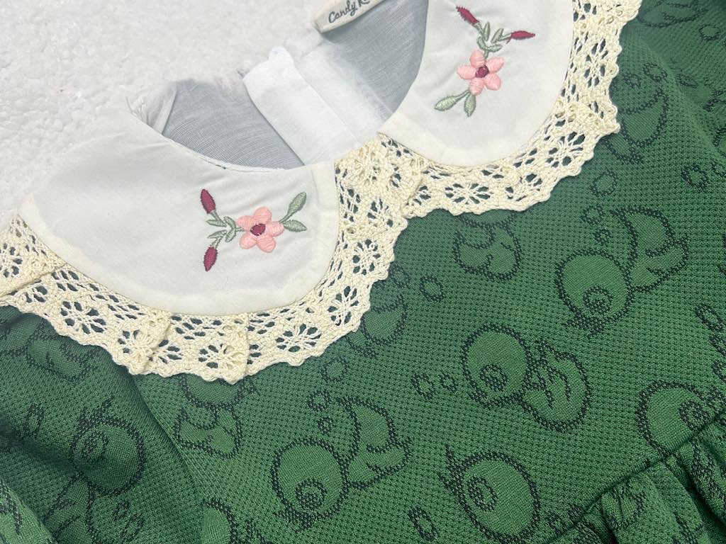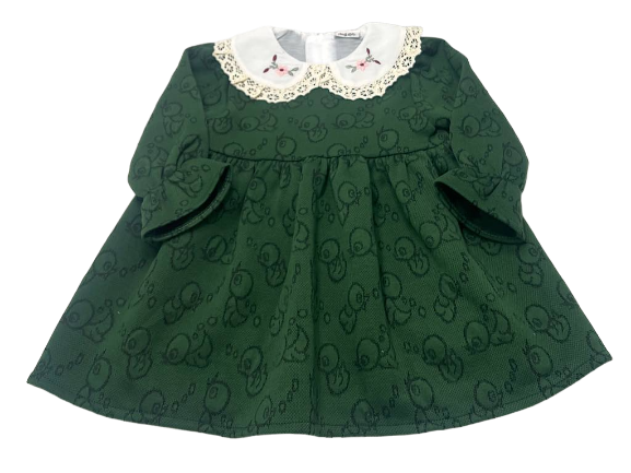 سارافون دخترانه ژاکارد یقه گلدوزی سبز