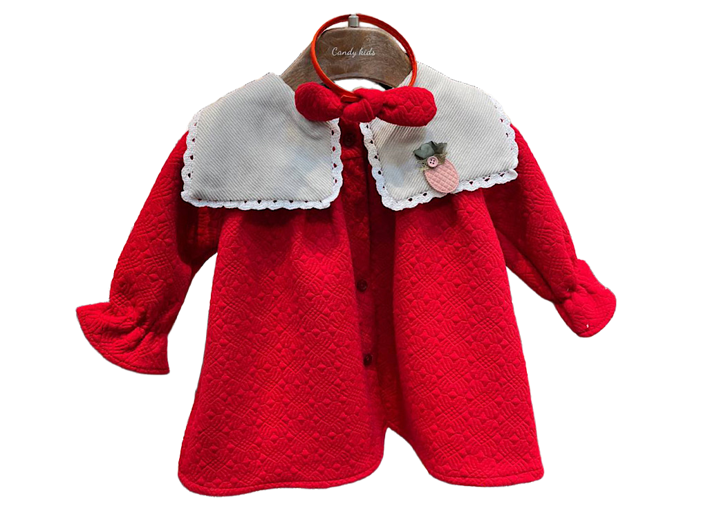 پیراهن دخترانه ژاکارد یقه ملوانی قرمز