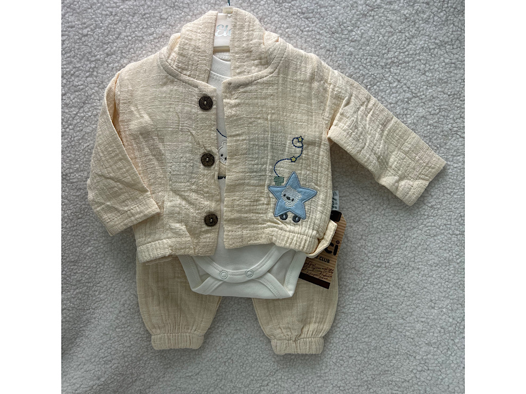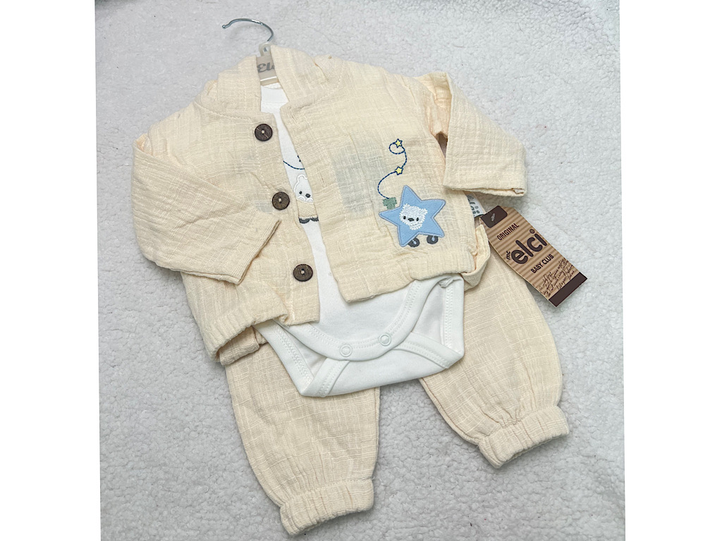 ست سه تکه نوزادی پسرانه کتان نخ دارای گلدوزی ELCI